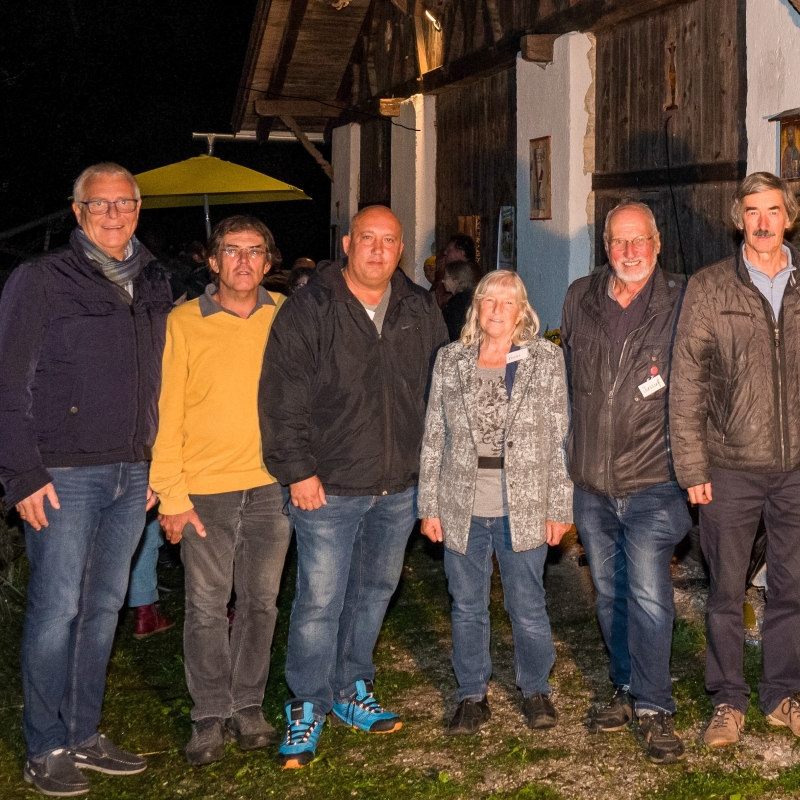 Die Verantwortlichen und ihre Gratulanten (v.r.): Gerhard Schild, Josef Lechner, Jussuf Windischer, Vroni Windischer, Ivan Horvath, Michael Engele, Christoph Wötzer.