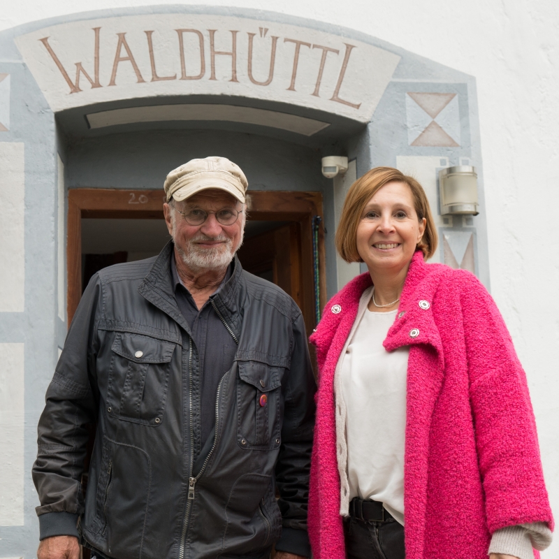 Landesrätin Gabriele Fischer gratulierte Jussuf Windischer zum 10-jährigen Jubiläum des „Waldhüttls“.