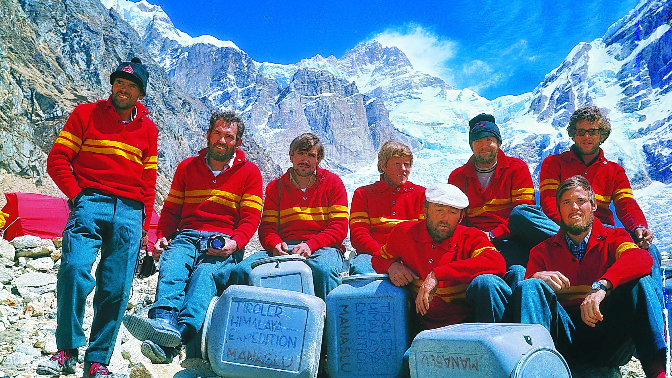 Die jungen Alpinisten Wolfgang Nairz, Oswald Ölz, Hansjörg Hochfilzer, Horst Fankhauser, Reinhold Messner, Andi Schlick, Franz Jäger, Josl Knoll und Hans Hofer machten sich 1972 von Tirol aus auf den Weg zur Manaslu-Südwand. Zur damaligen Zeit waren Expeditionen dieser Art eine Reise ins Ungewisse: „Wir hatten nur Skizzen über die Grenzverläufe zu Tibet, heute China, und ein paar Dias von der Gegend“, so Wolfgang Nairz, der Leiter der Expedition. Getrieben war die junge Gruppe damals von der Sehnsucht, die Berge der Welt zu besteigen, denn außer Messner war noch niemand von ihnen im Himalaya gewesen.