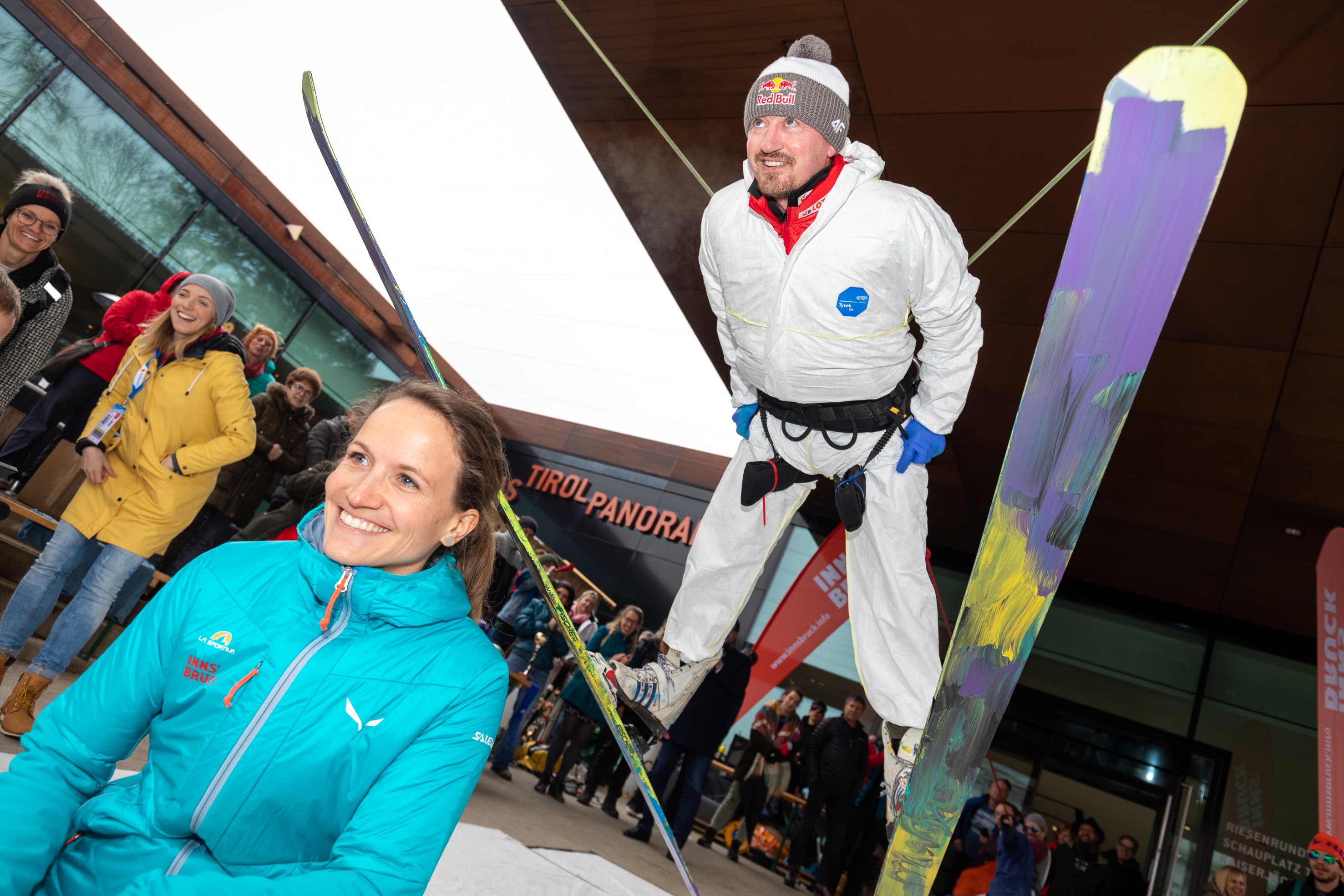 Adam Małysz, vierfacher Einzelweltmeister und vierfacher Weltcup-Gesamtsieger, absolvierte die künstlerische Performance mit Bravour: „Auf der richtigen Sprungschanze fühle ich mich wohler, aber ich glaube Kunst auf diese Art zu gestalten, ist weltweit einzigartig. Ich habe in Innsbruck meinen ersten Weltcupsieg geholt, hier zu sein, ist für mich immer etwas ganz Besonderes.“