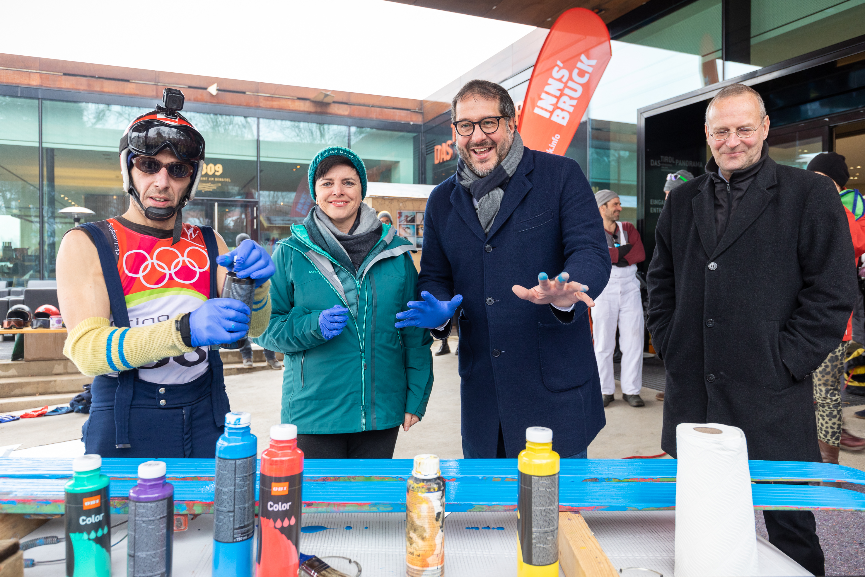 Franz Xaver Gruber, Vizebürgermeister von Innsbruck. „Ich bin stolz, dass zum dritten Mal innerhalb weniger Monate WM-Luft in Innsbruck spürbar ist. Es ist außerdem schön zu sehen, wie im Rahmen der WM das Sportliche mit der Kunst verbunden wird und die Menschen begeistert. Mit dem Bergisel, der ja auch Austragungsort vieler der Sprungbewerbe im Rahmen der WM ist, wurde die perfekte Location für diese einzigartige Kunstaktion gefunden“, so Gruber.