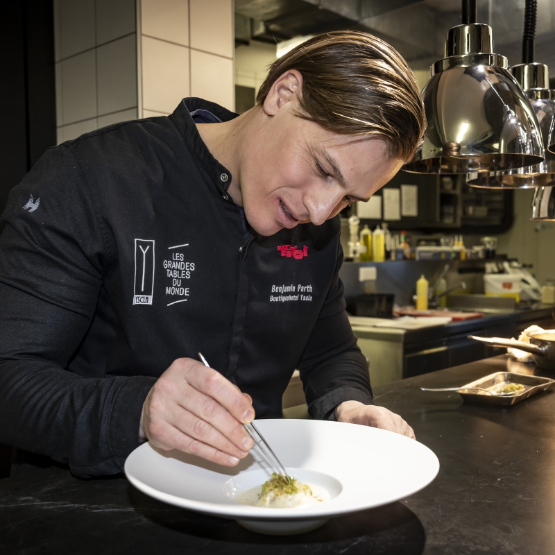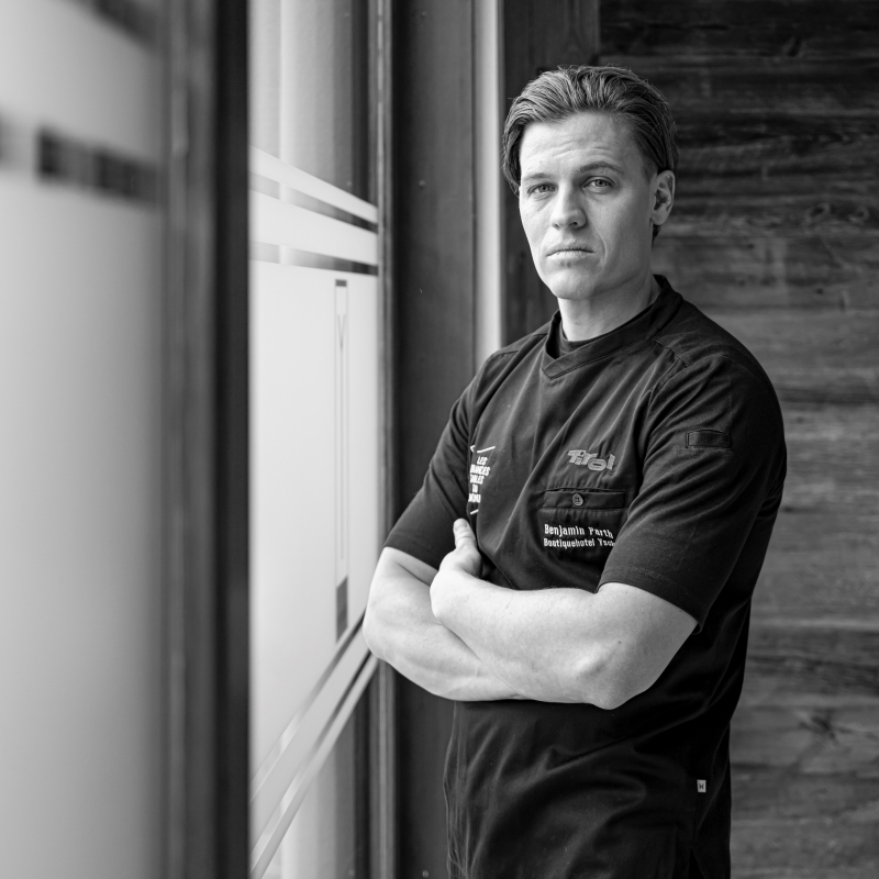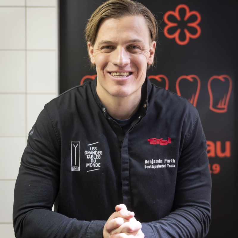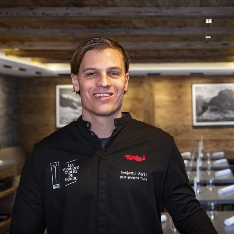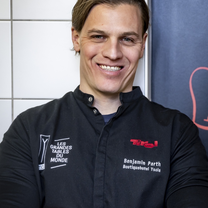 Mit seinem Gourmetrestaurant Stüva im familieneigenen Boutiquehotel YSCLA in Ischgl erzielt Benjamin Parth seit Jahren nationale und internationale Top-Platzierungen. Er lernte sein Handwerk bei den besten Köchen Europas: Nach Lehrjahren bei Heinz Winkler in Aschau im Chiemgau (DE) führte die berufliche Laufbahn den jungen Tiroler unter anderem nach Wolfsburg (DE), wo er bei Sven Elverfeld im Restaurant Aqua tätig war. Weitere markante Stationen seiner Karriere waren die L‘Auberge de l’Ill von Marc Haeberlin in Illhaeusern (FR) und das Can Fabes in Sant Celoni (ES), wo er von Santi Santamaria lernte. Zurück in der Heimat ist er seit 2008 im Hotel seiner Familie Küchenchef seines Gourmetrestaurants Stüva und bietet seinen Gästen ein exquisites Fine-Dining Erlebnis.