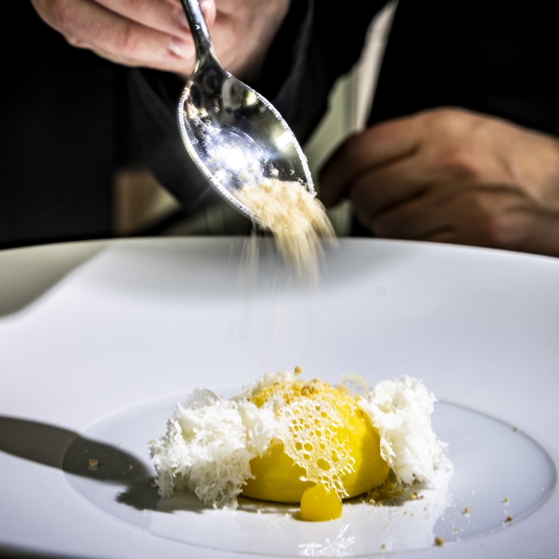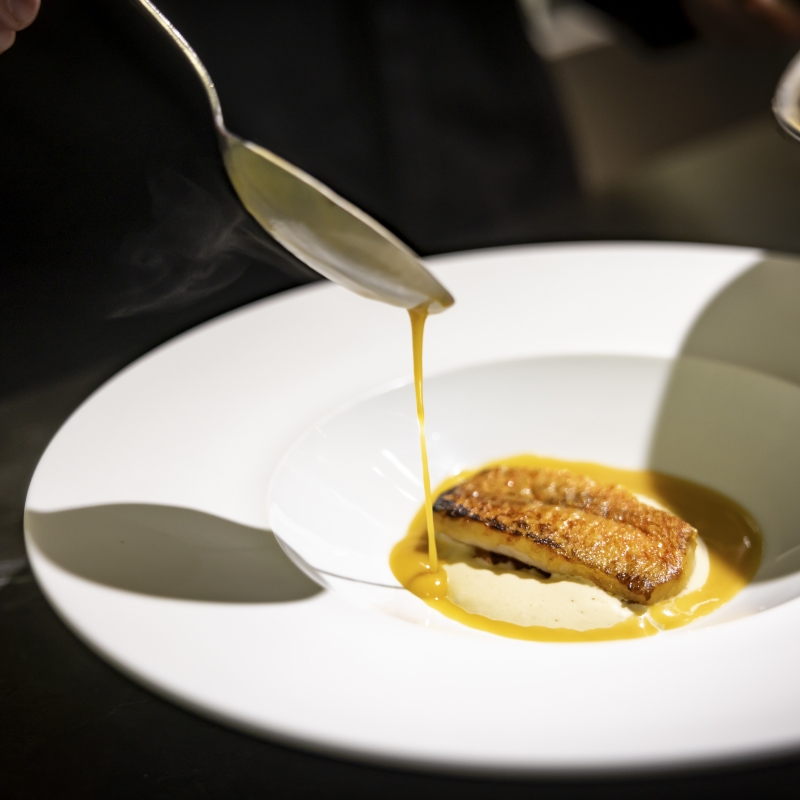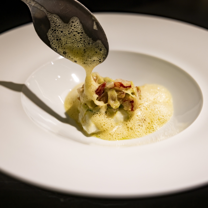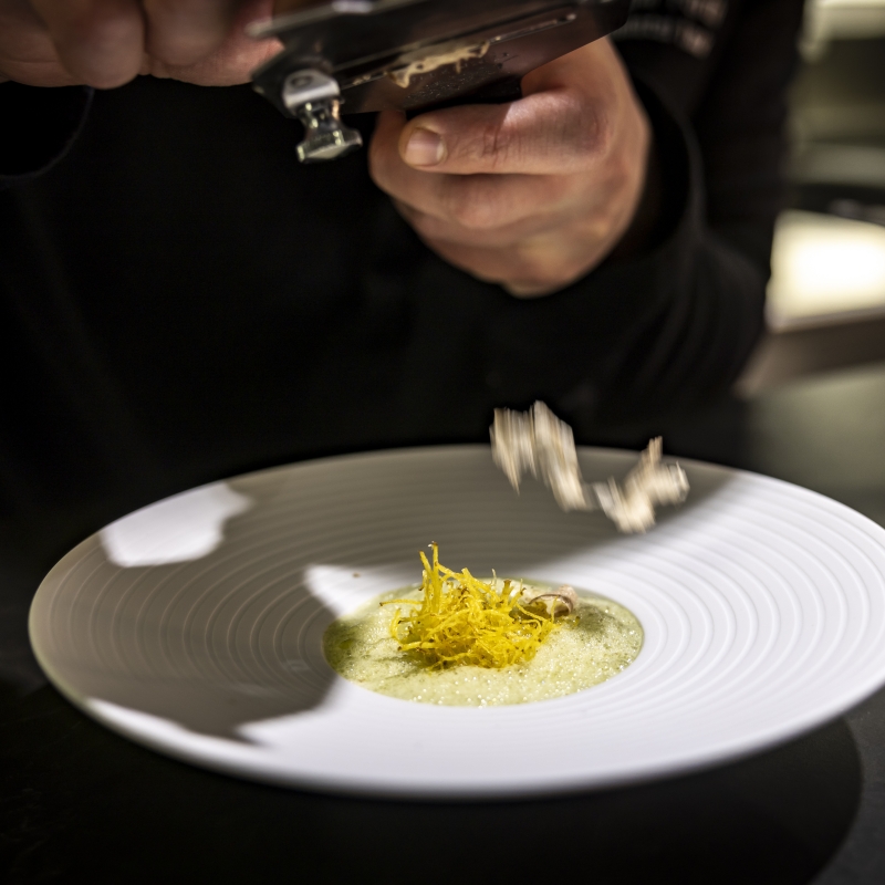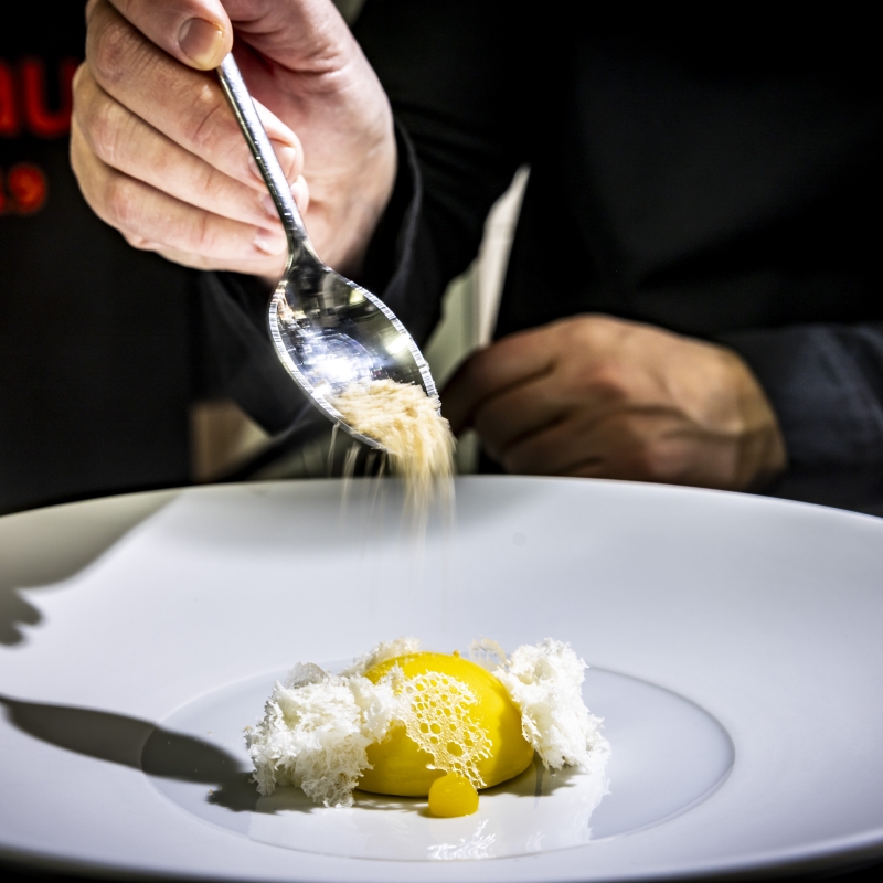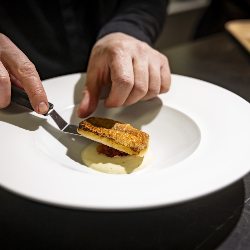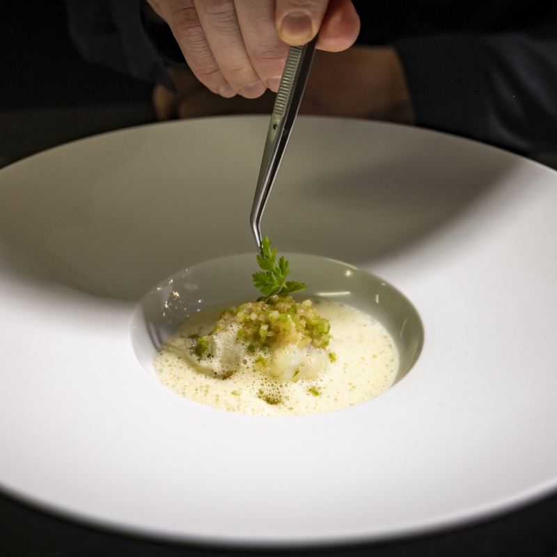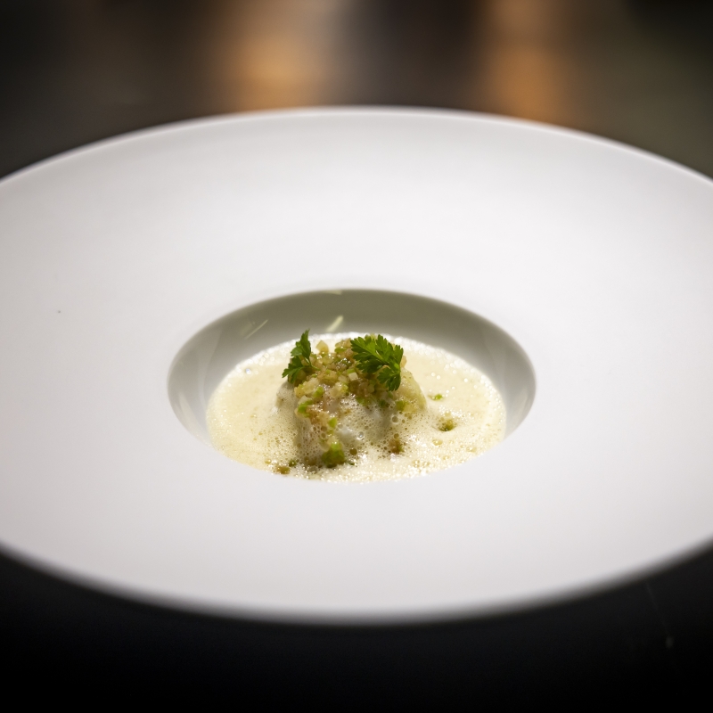 Benjamin Parths Signature-Dish: Seesaibling auf Galtürer Enzianschaum