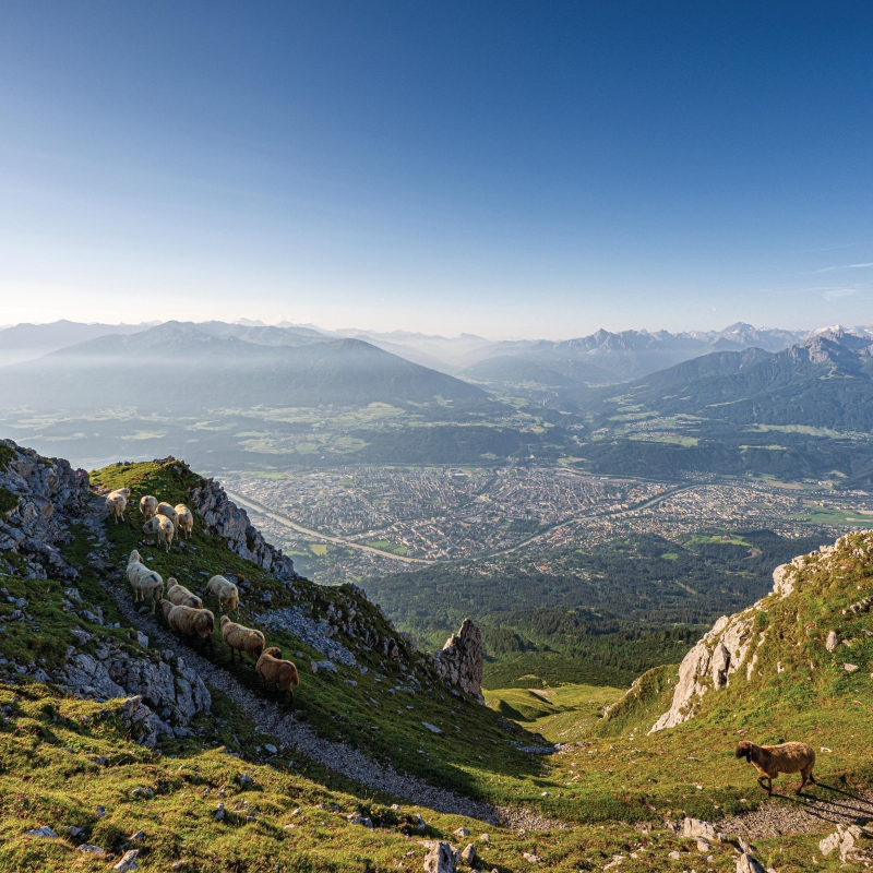 Die Nordkette, wo stets eine frische Brise weht, gehört zu den schönsten Plätzen der Region mit einem atemberaubenden Ausblick auf die Stadt Innsbruck.