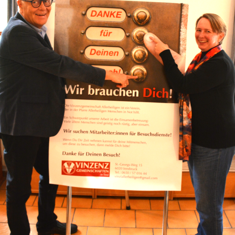 Die Vinzenzgemeinschaften suchen laufend neue Mitglieder, um ihre Dienste flächendeckend im ganzen Land anbieten zu können: Karoline Knitel und Christoph Wötzer (Präsidentin und Präsident VGen Tirol).