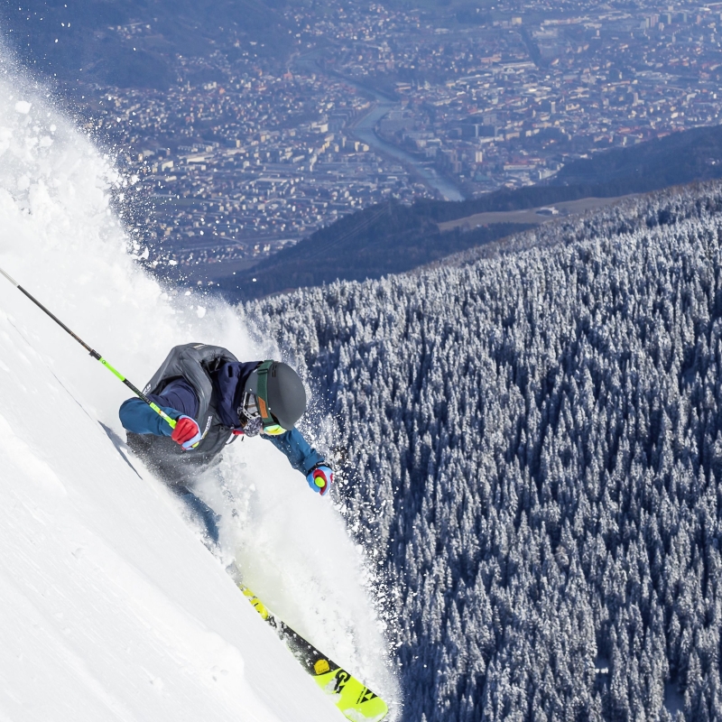 All dedicated powder fans can experience the perfect freeriding day in four ski areas around the capital of the Alps: the Nordkette, the Kühtai, the Axamer Lizum or the Stubai Glacier. What this means is that there’s simply too much choice: these mountains offer such a varied terrain and slope configurations. Around Innsbruck in the winter there are almost always unspoilt first lines on the deep snow slopes.