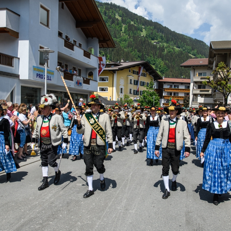 Die Jubiläums-Musikkapelle als krönender Abschluss des Aufmarsches: Die Bundesmusikkapelle Zell am Ziller.