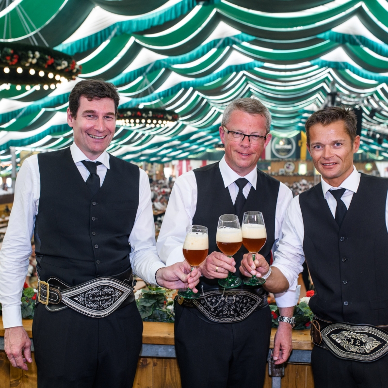 Stießen auf ein gelungenes Gauder Wochenende an: v.l. Martin Lechner, Geschäftsführer von Zillertal Bier, Robert Pramstrahler, Bürgermeister von Zell am Ziller und Ferdinand Lechner, Obmann des TVB Zell-Gerlos.