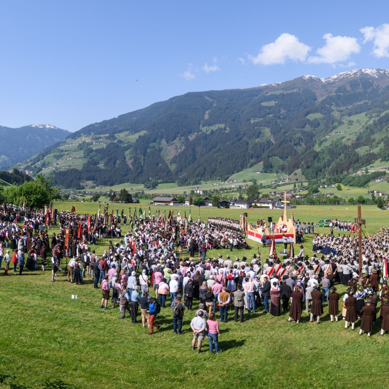 720 Musikanten spielten bei der Feldmesse gemeinsam die Musikantenmesse des Tiroler Polizeimusik-Kapellmeisters Michael Geisler.