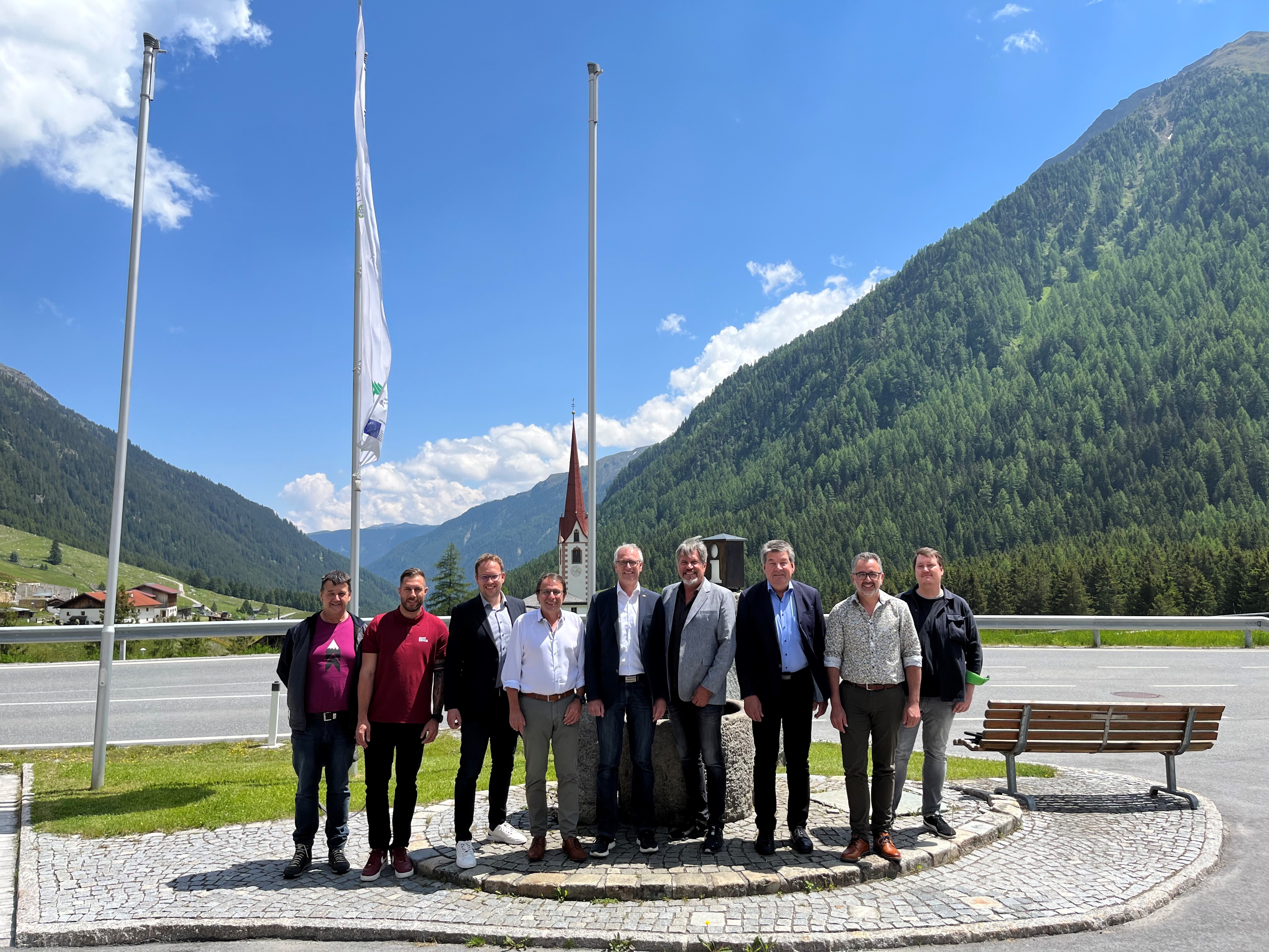 Trafen sich zum ersten Workshop-Termin von „Zukunft Kühtai-Sellraintal“ in St. Sigmund i. Sellrain (v.l.): Willi Mareiler (Prokurist und Betriebsleiter der Bergbahnen Kühtai sowie Gemeindevorstand Silz), Lukas Reich (Regionalleiter Kühtai-Sellraintal von Innsbruck Tourismus), Benedikt Singer (Bürgermeister Sellrain), Anton Schiffmann (Bürgermeister St. Sigmund im Sellrain), Philip Haslwanter (Geschäftsführer Bergbahnen Kühtai), Christoph Stock (Bereichsleitung Infrastruktur / stv. Geschäftsführer Innsbruck Tourismus), Helmut Dablander (Bürgermeister Silz), Hans Motz (Bürgermeister Gries im Sellrain) und Benjamin Türkis (Bereichsleitung Destinationsentwicklung Innsbruck Tourismus).