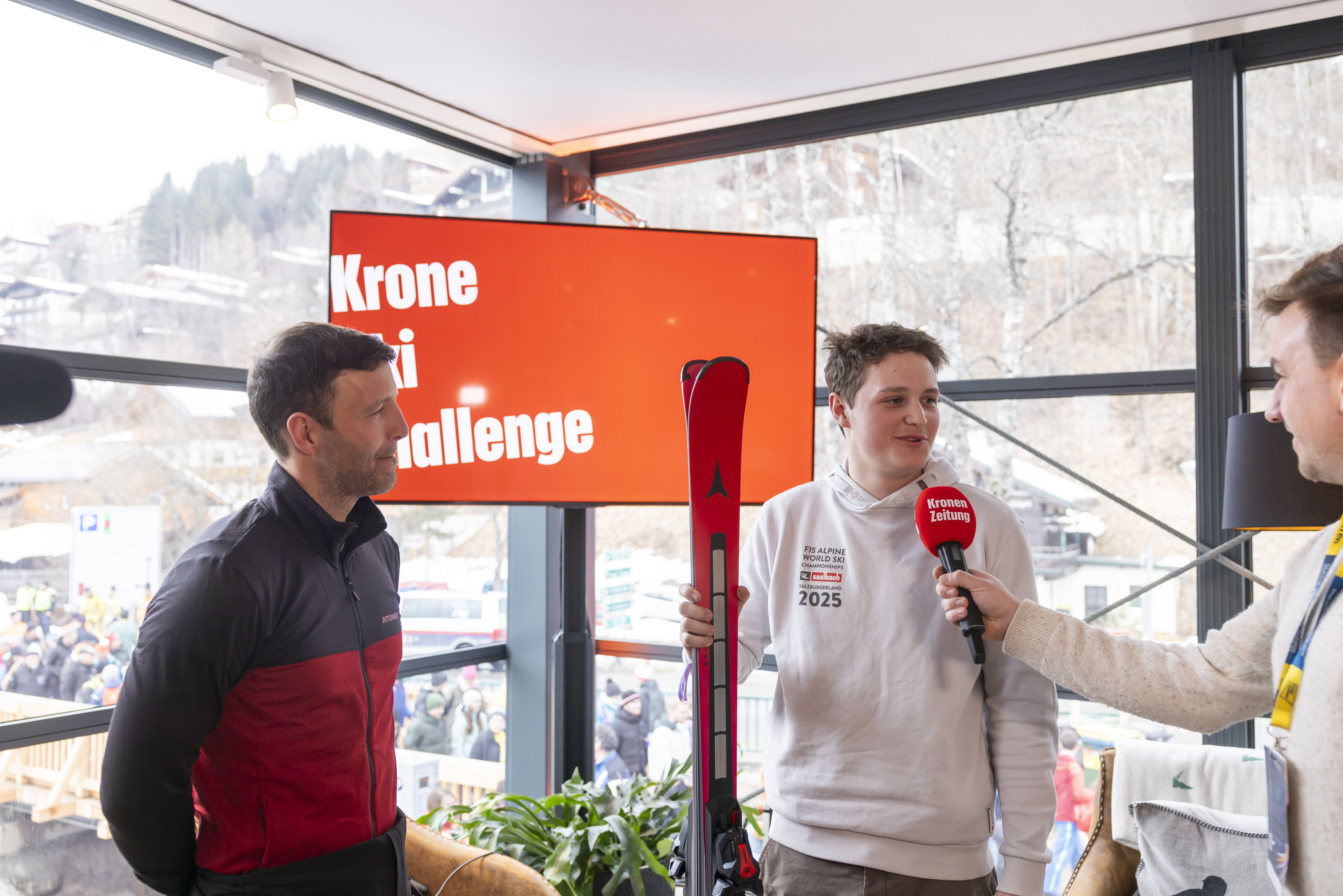 Im Rahmen der Heim-WM Saalbach 2025 trafen sich heute die Top 3 der Krone Ski Challenge im Home of Snow zum ersehnten Finale. Vom 7. bis 29. Jänner 2025 konnten sich Ski-Fans und Gamer in einem virtuellen Ski-Rennen messen und gegeneinander antreten. Die Finalisten Lukas Fähndrich, Thomas Trojer und Lukas Kristandl lieferten sich heute ein knappes Live-Rennen um den Sieg. „Ziel der Krone Ski Challenge ist es, die Jugend wieder verstärkt in den Skisport zu integrieren und sie für das Erlebnis auf der Piste zu begeistern“, betont Jennifer Rassi, Community Managerin der Ski Challenge.