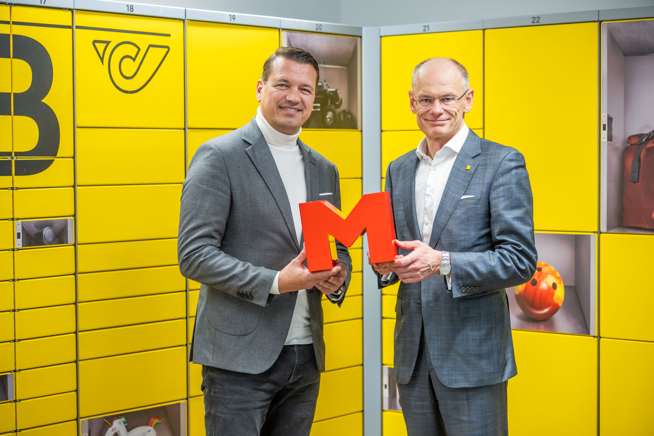 Ingo Panknin, Mitglied der MPREIS Geschäftsführung, mit Walter Oblin, Generaldirektor der Österreichischen Post AG