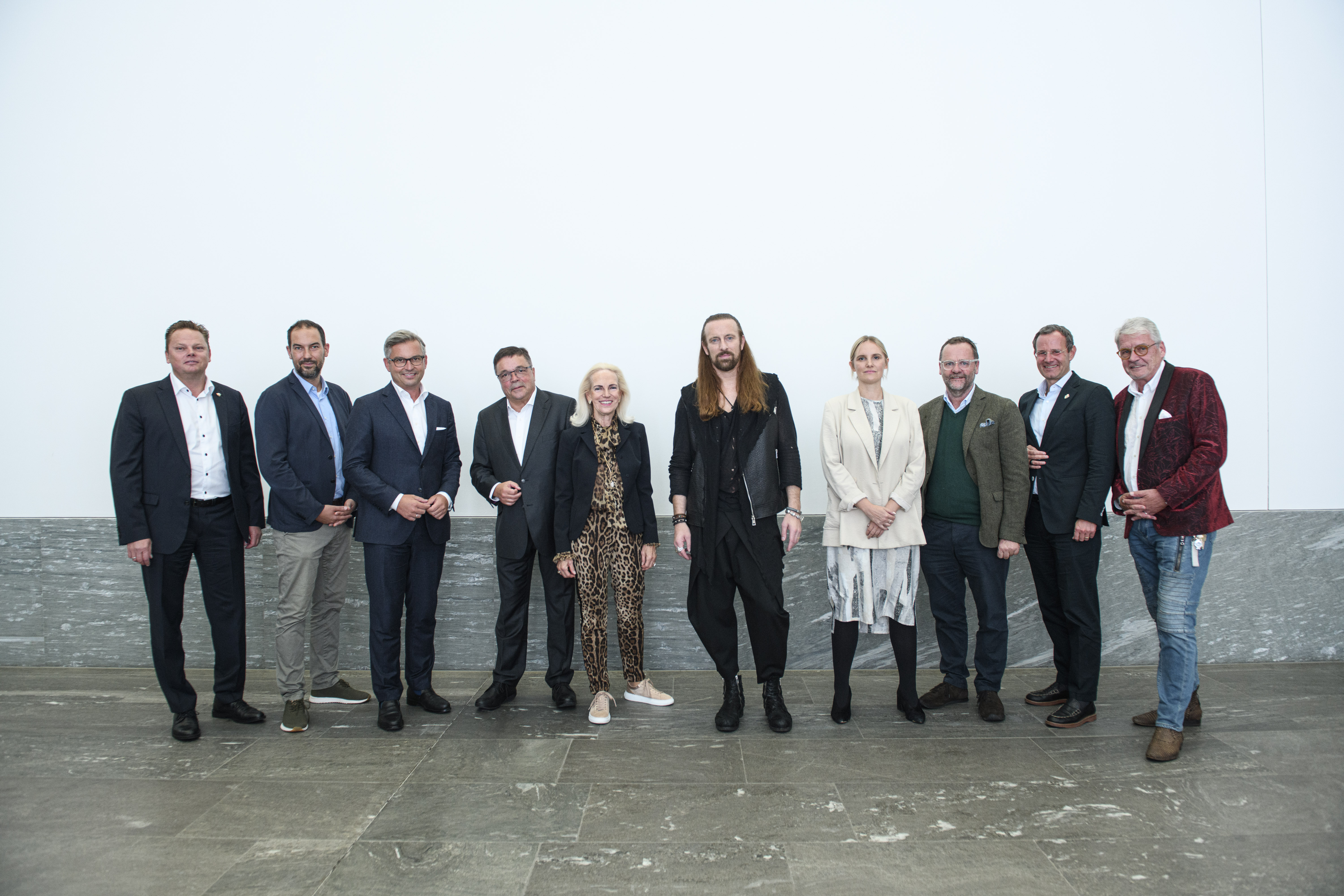 Das 5. Tiroler Adler Forum (v.l.): Karl Christian Handl, Andreas Tschas, Magnus Brunner, Alois Schranz, Ingeborg Freudenthaler, Anders Indset, Lena Glaser, Sepp Schellhorn, Manfred Pletzer sowie Peter Grüner beim gemeinsamen Gruppenfoto der Referenten und Vorstandsmitglieder der Tiroler Adler Runde