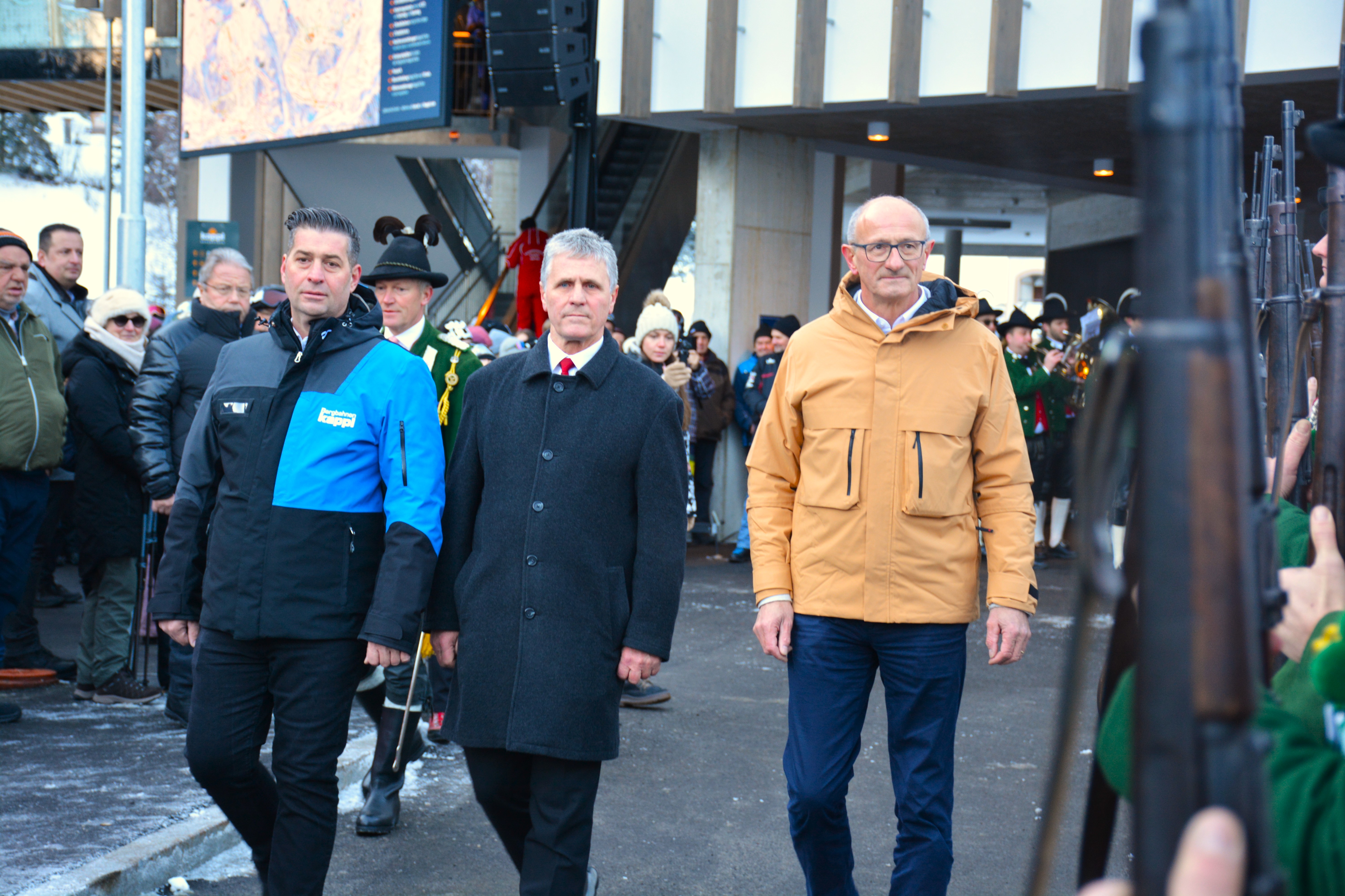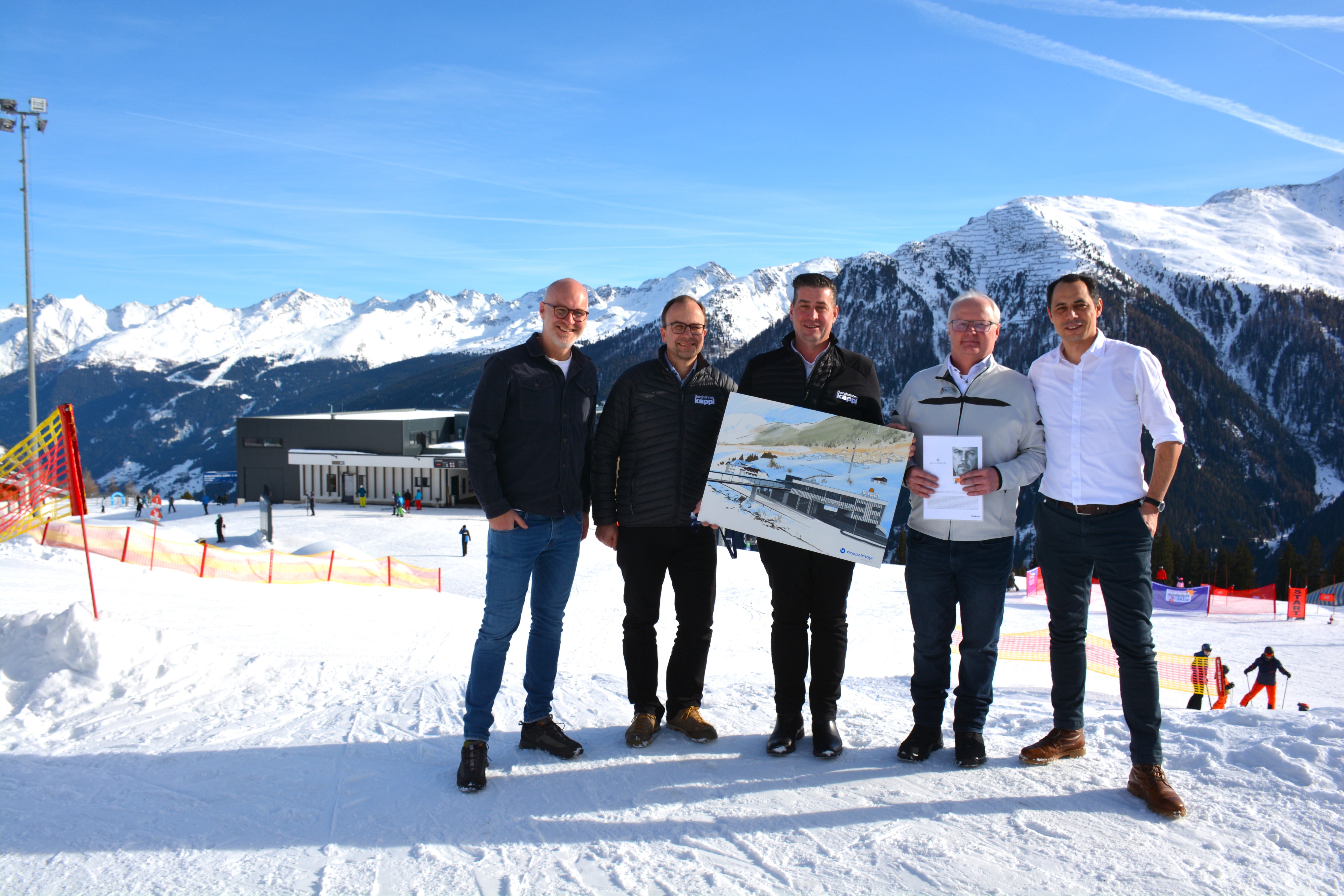 Die neue Diasbahn in Kappl wurde feierlich eröffnet. (V.l). Alexander von der Thannen (Präsident TVB Paznaun-Ischgl), Helmut Ladner (Bürgermeister Kappl), Anton Mattle (Landeshauptmann Tirol), Andreas Jäger (Vorstand TVB Paznaun-Ischgl), Egon Jäger (Aufsichtsratsvorsitzender Bergbahnen Kappl AG) und Andreas Kleinheinz (Vorstand Bergbahnen Kappl AG).