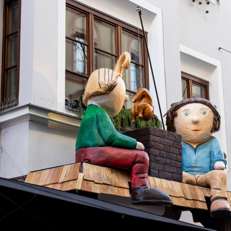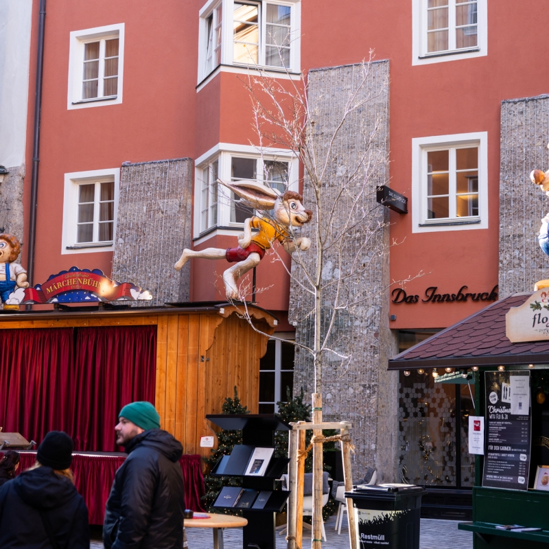 Die Märchenfiguren in der Kiebach- und Seilergasse sind seit 28 Jahren Teil der Innsbrucker Bergweihnacht – nun wurden sie sukzessive erneuert. Der Kanon bleibt bewusst vertraut: Viele Motive stammen weiterhin aus den Märchen der Gebrüder Grimm, erweitert um internationale Klassiker wie Alice im Wunderland oder Pinocchio. Die neue Inszenierung bringt die Geschichten mit frischen Farben, präzisen Formen und liebevollen Details in die Gegenwart und spricht Kinder wie Erwachsene an.