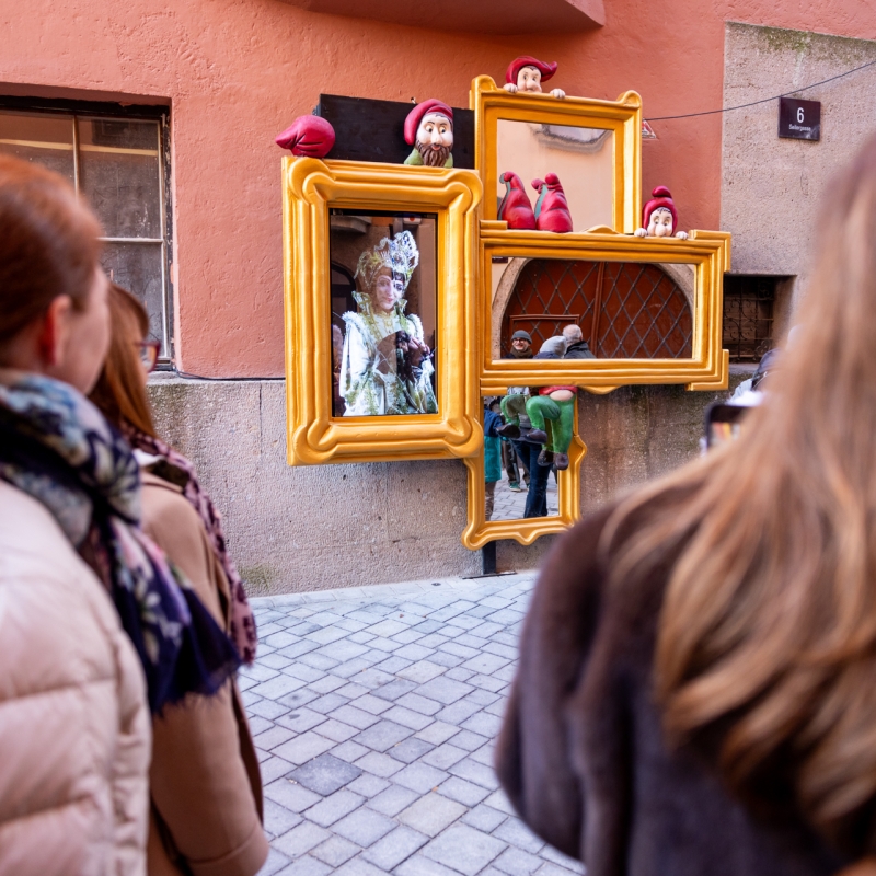 Die Figuren sind bewusst auf drei Ebenen gesetzt – am Boden, über den Köpfen und an den Fassaden. So entstehen Blickachsen, Entdeckungsmomente und klare Wegeführungen durch die Kiebach- und Seilergasse. Aus ikonischen Szenen – von Aschenputtel über Rotkäppchen bis zu Alice im Wunderland – ergibt sich ein schlüssiges Stadterlebnis, das die Nebengassen zum Bühnenraum macht. „Die neuen Märchenbilder schaffen Momente, die man teilt – und sie lenken die Wege bewusst in die Seitengassen. Das entzerrt Besucherströme, erhöht die Aufenthaltsdauer, steigert die Frequenz und stärkt den Handelsstandort in der Altstadt. Kostenfrei erlebbar und qualitativ hochwertig – so begeistern wir Familien und schaffen gleichzeitig Wertschöpfung für die Innsbrucker Betriebe“, sagt Peter Paul Mölk, Obmann von Innsbruck Tourismus.