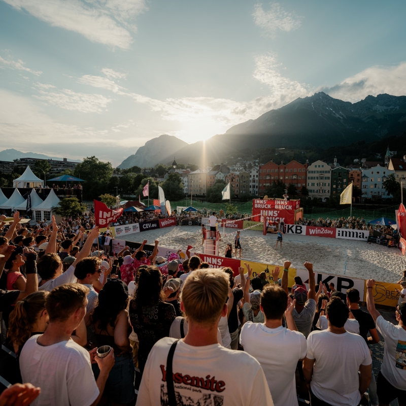 Das Innsbruck Beachevent verwandelt den Innsbrucker Marktplatz vom 4. bis zum 7. Juni 2026 zum nunmehr fünften Mal zum Centercourt: sportliche Höchstleistungen, alpin-urbanes Flair und sommerliche Vibes sind garantiert. Das internationale Beachvolleyball-Turnier ist Teil der win2day Beachvolleyball Tour PRO und des Mitteleuropäischen Volleyball Verbandes (MEVZA): Spieler:innen aus Österreich, Kroatien, Ungarn, Israel, Tschechien, Slowenien, der Slowakei und Zypern kommen für packende Matches in die Tiroler Landeshauptstadt. Die Fans dürfen sich auf einen absoluten Höhepunkt im Eventkalender der Region Innsbruck freuen – intensive Partien, Sundowner-Partys und Sommerstimmung vor der eindrucksvollen Kulisse der Nordkette inklusive.