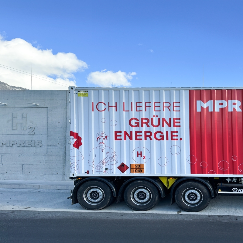 Martina Dutzler. Für sich selbst setzt MPreis den Wasserstoff in seiner Bäckerei Therese Mölk sowie für seinen ersten wasserstoffbetriebenen Lkw ein, der auch der erste dieser Art in Österreich ist. Das Brennstoffzellen-Fahrzeug beliefert seit März 2023 Supermärkte des Tiroler Nahversorgers. „Mit unserem ersten H2-Lkw können wir die Treibhausgas-Emissionen um etwa 65.000 Kilogramm CO2 pro Jahr reduzieren und leisten damit schon jetzt unseren Beitrag, die Klimaneutralität in Österreich bis 2040 zu erreichen“, so Dutzler.
