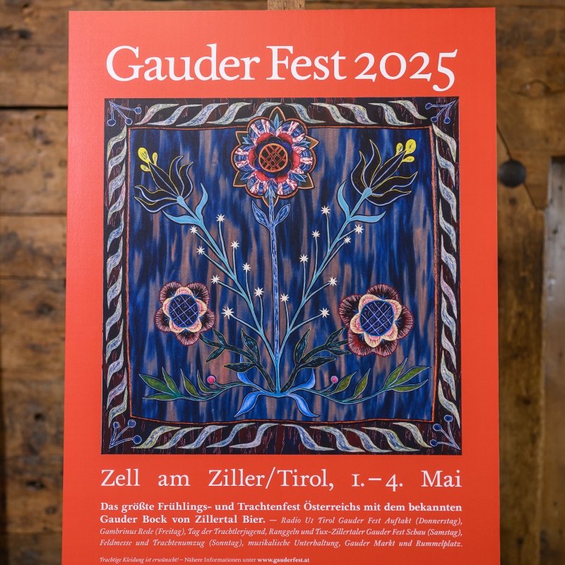 Das diesjährige Sujet von Vanja Krajnc zeigt die gestickten Blumen der Zillertaler Tracht.