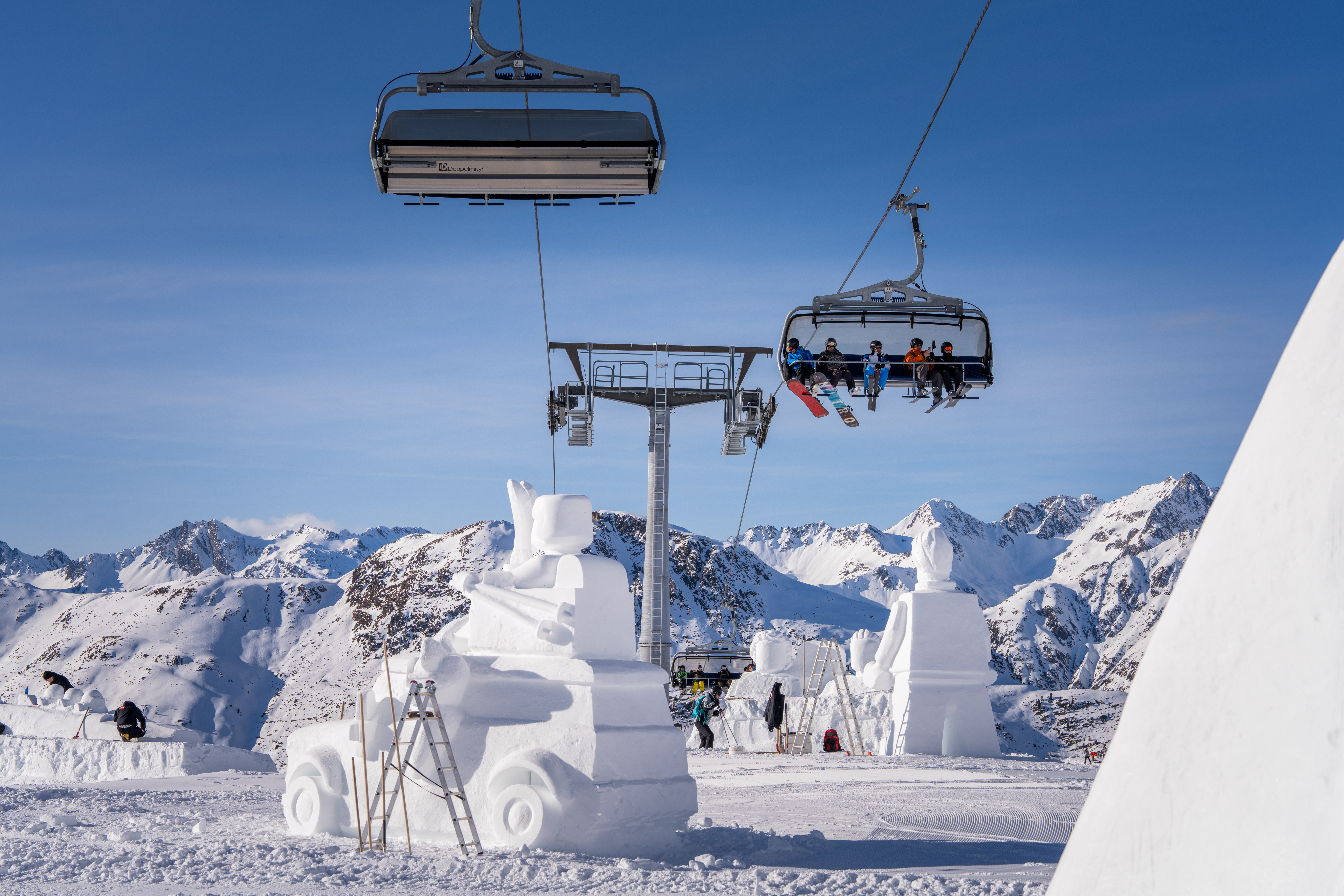 - Der 1. Platz geht an das Künstlerteam Armin Rifesser und Ivan Holzknecht aus Südtirol mit der Rodel-Skulptur „Winterspass in Ischgl“.