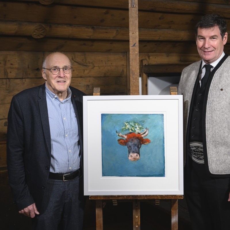 Das Sujet, welches vom Künstler Anton Christian gestaltet wurde, ziert ein Tux-Zillertaler Rind.