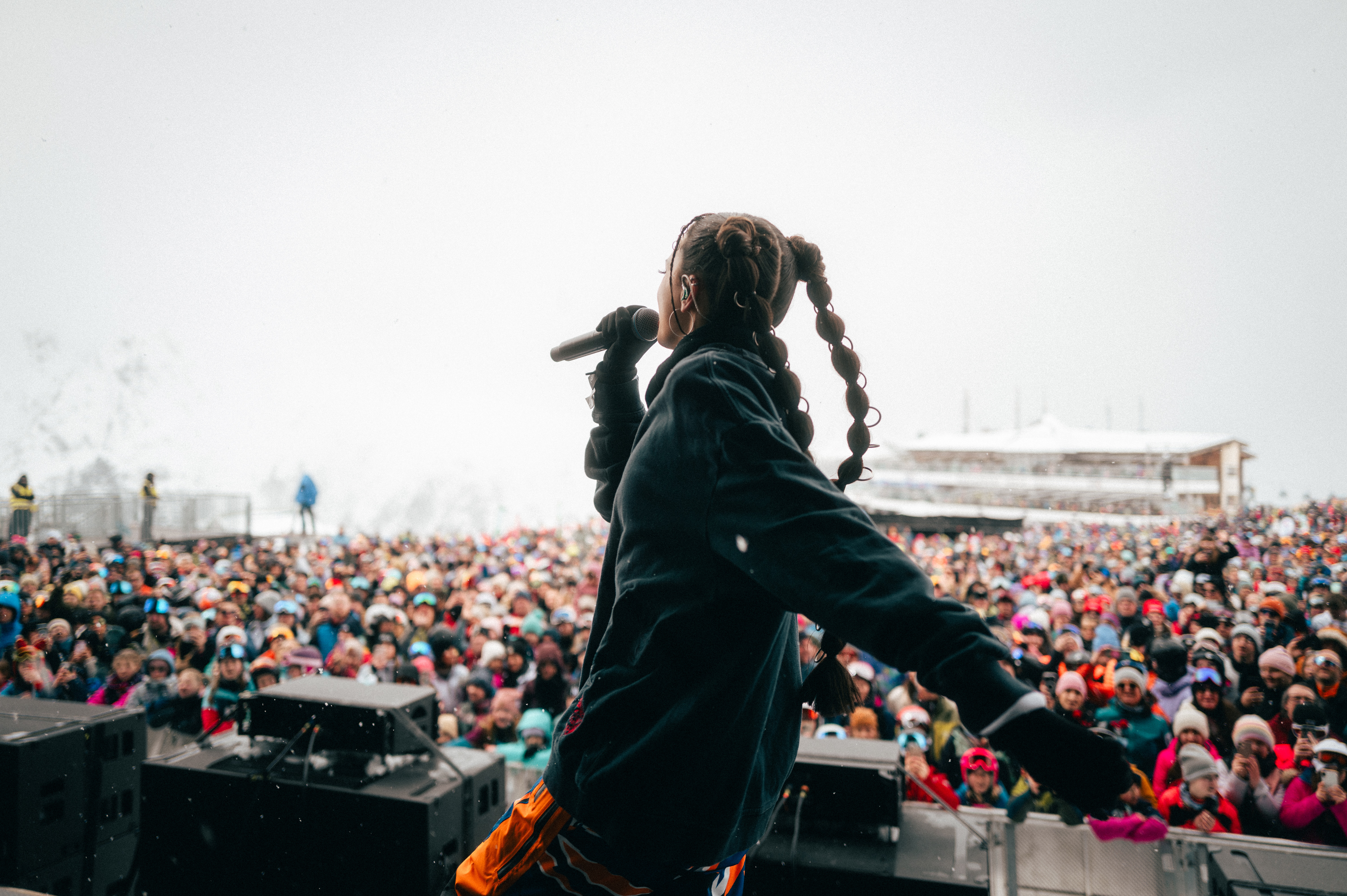Der „Spring Blanc“ ist eröffnet: Beim Top of the Mountain Easter Concert am 1. April, dem diesjährigen Auftakt der beliebten Sonnenskilauf-Veranstaltungsreihe, begeisterte Nina Chuba auf der Ischgler Idalp mit fünf neuen und noch unveröffentlichten Songs die 14.000 Wintersportler. Auf 2.320 Höhenmetern zelebrierte die 25-jährige ihr Ischgl Debüt mit ihrem zu Recht gehypten Genre-Mix aus Pop, Rap, Hip-Hop und Dancehall-Rhythmen und sorgte mit Hits wie „Wildberry Lillet“, „Ich hass Dich“, „Femminello“ oder „Mangos mit Chili“ für ausgelassene Party-Stimmung im Skigebiet.