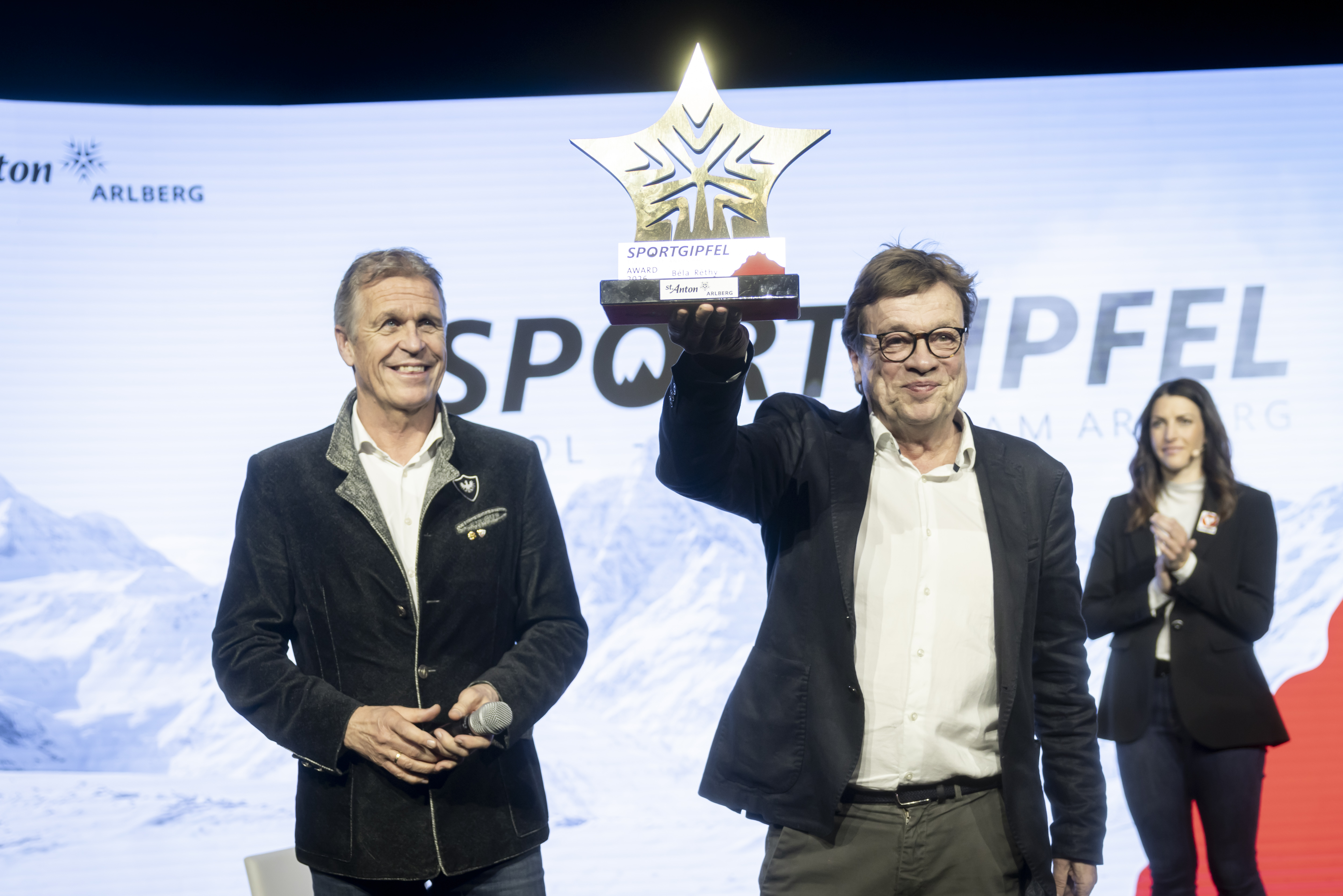 Zum Abschluss wurde erstmals der Sportgipfel Award verliehen. Geehrt wurde Béla Réthy, der über Jahrzehnte das Sportpublikum im deutschsprachigen Raum geprägt hat. „Béla Réthy ist nicht nur seit Jahrzehnten eng mit der Region St. Anton am Arlberg verbunden, sondern steht auch als Synonym für Kompetenz und Leidenschaft in der Sportberichterstattung“, erklärte Martin Ebster, Direktor des Tourismusverbandes St. Anton am Arlberg. „Den Fokus auf die gestaltende Kraft des Sports zu legen, ist eine wichtige Zielsetzung des Sportgipfels“, betonte Ebster und ergänzte: „Diese Motivation und Verbundenheit, wie wir sie rund um die Weltmeisterschaft 2001 gespürt haben, ist auch entscheidend, wenn wir neuerlich eine Ski-WM austragen wollen.“