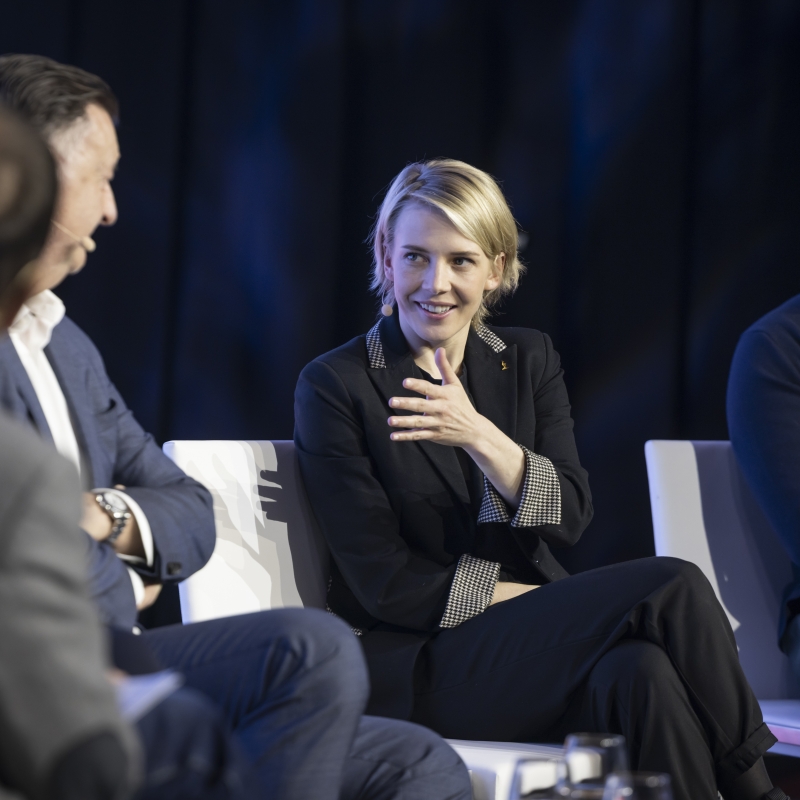Ebenso bereicherten Eva Pinkelnig, Gesamtweltcupsiegerin im Skispringen 2022/23 und Sportlerin des Jahres 2023, Valentina Höll, vierfache Weltmeisterin im Downhill-Mountainbike, Kurt Matzler, Professor für Strategisches Management und Extremsportler, sowie Philipp Schörghofer, Doppelweltmeister im Ski Alpin, die Diskussionen rund um die künftigen Entwicklungen im Leistungssport. Eva Pinkelnig brachte dabei die mentale Komponente auf den Punkt: „Technik kann die körperliche Komponente messen, aber nicht die mentale Stärke, die jeder Wettkampf erfordert. Ich hatte Bewerbe, da war ich laut Berechnung zu spät dran – und doch habe ich gewonnen. Es gibt also ganz klar noch menschliche Komponenten, die über Sieg oder Niederlage entscheiden.“ Valentina Höll ergänzte: „Wenn man stark ist – körperlich oder mental – und einen einfach nichts aus der Ruhe bringen kann, dann ist man auch als Mensch eine Maschine.“
