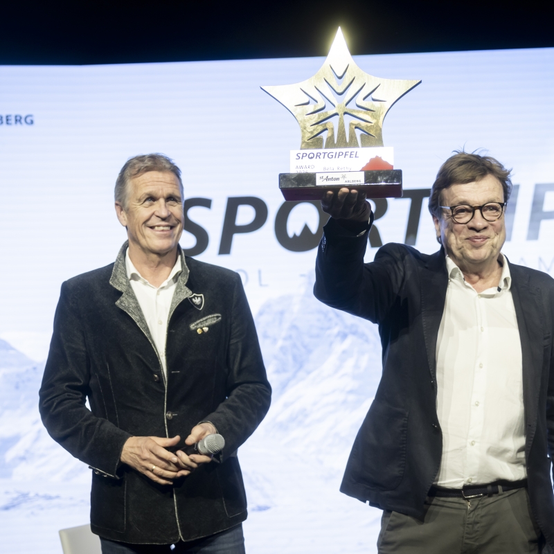 Zum Abschluss wurde erstmals der Sportgipfel Award verliehen. Geehrt wurde Béla Réthy, der über Jahrzehnte das Sportpublikum im deutschsprachigen Raum geprägt hat. „Béla Réthy ist nicht nur seit Jahrzehnten eng mit der Region St. Anton am Arlberg verbunden, sondern steht auch als Synonym für Kompetenz und Leidenschaft in der Sportberichterstattung“, erklärte Martin Ebster, Direktor des Tourismusverbandes St. Anton am Arlberg. „Den Fokus auf die gestaltende Kraft des Sports zu legen, ist eine wichtige Zielsetzung des Sportgipfels“, betonte Ebster und ergänzte: „Diese Motivation und Verbundenheit, wie wir sie rund um die Weltmeisterschaft 2001 gespürt haben, ist auch entscheidend, wenn wir neuerlich eine Ski-WM austragen wollen.“