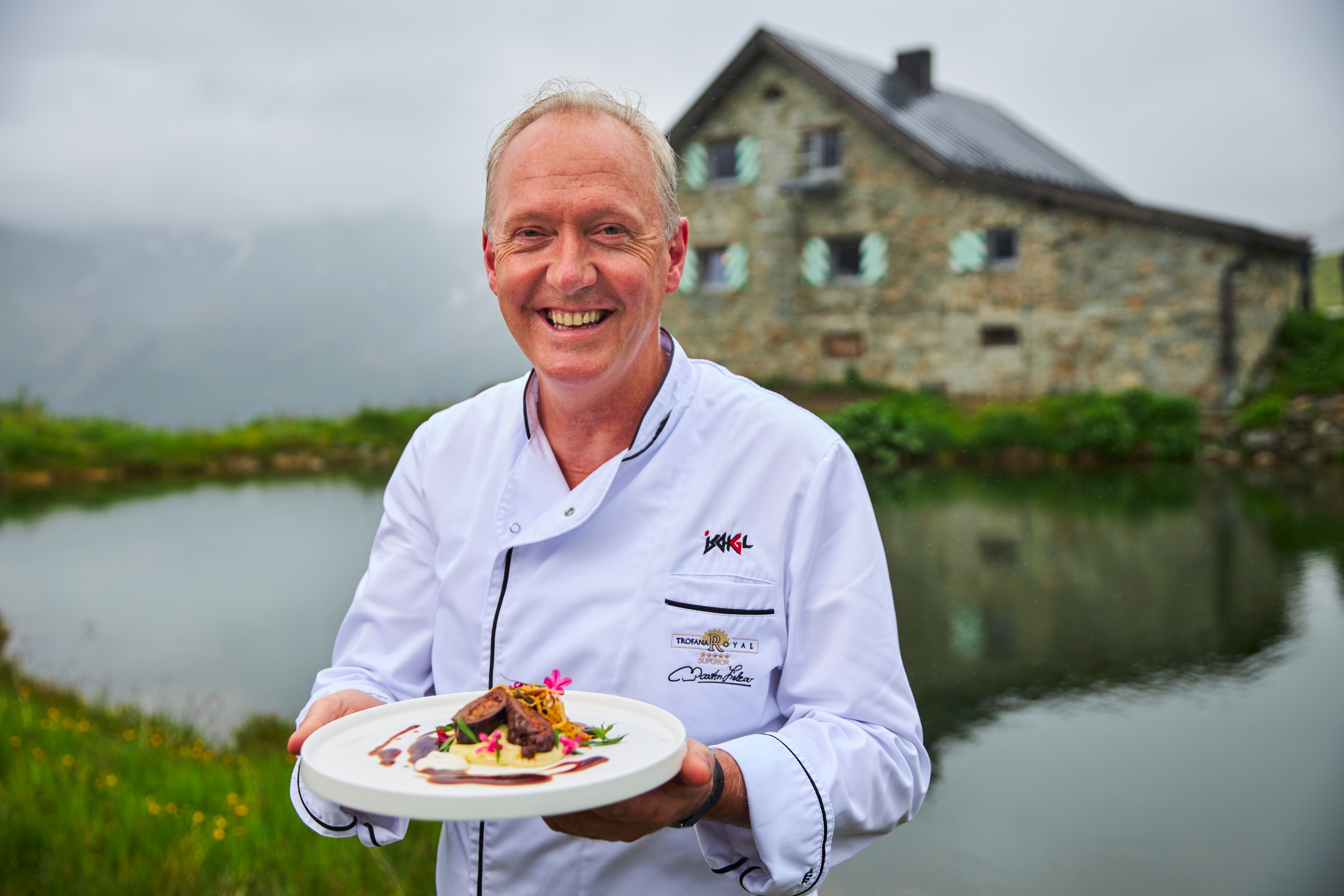 Heidelberger Hütte: Gunther Döberl (Stiar, Hotel Silvretta) Gunther Döberl sieht in seiner Küche die Alpen als Speisekammer. Dabei ist er fasziniert vom Einfallsreichtum vergangener Zeiten, in denen aus den einfachsten Mitteln die Klassiker der Alpenländischen Küche entstanden sind. Neue Techniken mit den alten Techniken wie Fermentieren, Trocknen, Einwecken und das Verwerten eines ganzen Tieres zu verbinden, ist zur Küchen-philosophie und Lebenseinstellung des Haubenkochs geworden. Für seine Gäste wählt Döberl seine Produkte nachhaltig, verwendet Erzeugnisse aus eigener Land- und Almwirtschaft und arbeitet eng mit regionalen Produzenten zusammen. Seine größten Auszeichnungen: 4 Hauben (17 Punkte) im Gault&Millau, 4 Sterne (94 Punkte) im Guide A la Carte, 3 Gabeln (92 Punkte) im Falstaff Restaurantguide. Sein Küchenstil: regional und alpin mit Pfiff. Sein Schwerpunkt: Die moderne Interpretation bäuerlicher Traditionsgerichte. Sein Gericht für die Heidelberger Hütte: