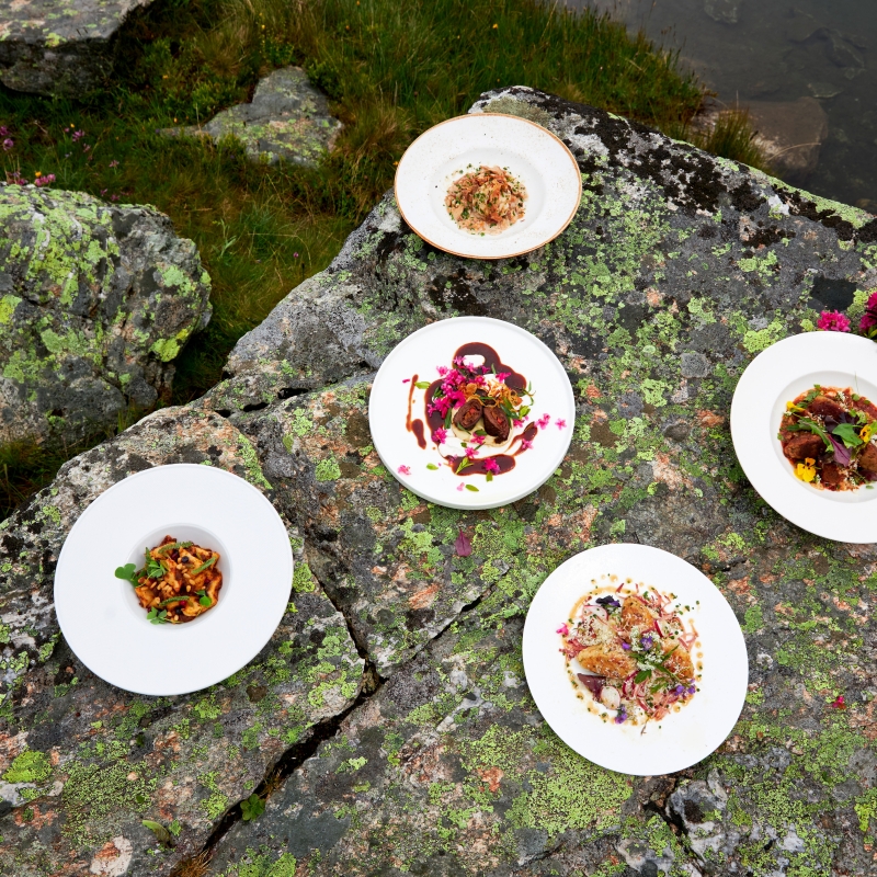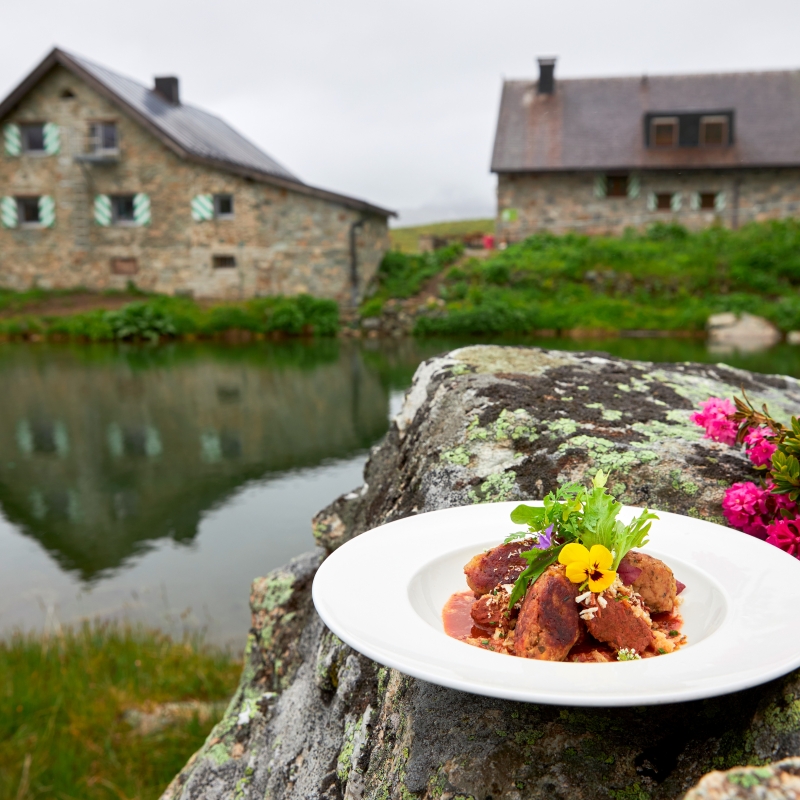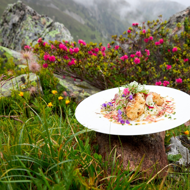 Hierzu übernehmen die fünf Paznauner Spitzenköche Gunther Döberl, Hermann Huber, Benjamin Parth, Martin Sieberer und Andreas Spitzer einen Sommer lang die Patenschaft für je eine Berghütte und kreieren ein raffiniertes, bodenständiges Gericht aus regionalen Zutaten. Dieses Gericht finden Wanderer dann den ganzen Sommer über auf der jeweiligen Hüttenspeisekarte. Zu verkosten gibt es Paznauner Bergkäsenocken mit warmem Spitzkohlsalat, Speck-Pfifferlingsknödel, Alpen-Bolognese vom Wild mit Erdäpfelgnocchi, Roulade vom Paznauner Hochlandrind mit Erdäpfeln, Rauch und Zwiebel sowie Rindsgulasch mit Steinpilz-Bergkäse-Nockerl, Wildkräuter-Salat und Zwiebelknusper.