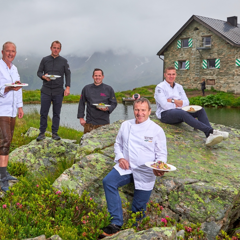 Die fünf Paznauner Spitzenköche Gunther Döberl, Hermann Huber, Benjamin Parth, Martin Sieberer und Andreas Spitzer übernehmen einen Sommer lang die Patenschaft für je eine Berghütte und kreieren ein raffiniertes, bodenständiges Gericht aus regionalen Zutaten