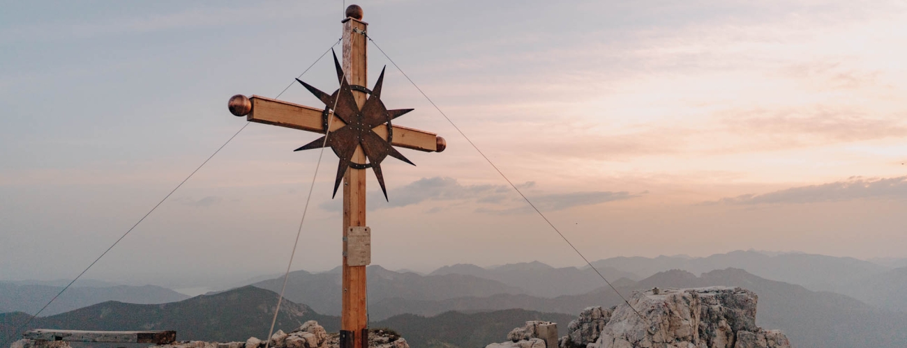 Steinerner Zeuge hoch über dem Achensee: Ein Gipfelkreuz aus Granit markiert die Seekarlspitze im Rofangebirge