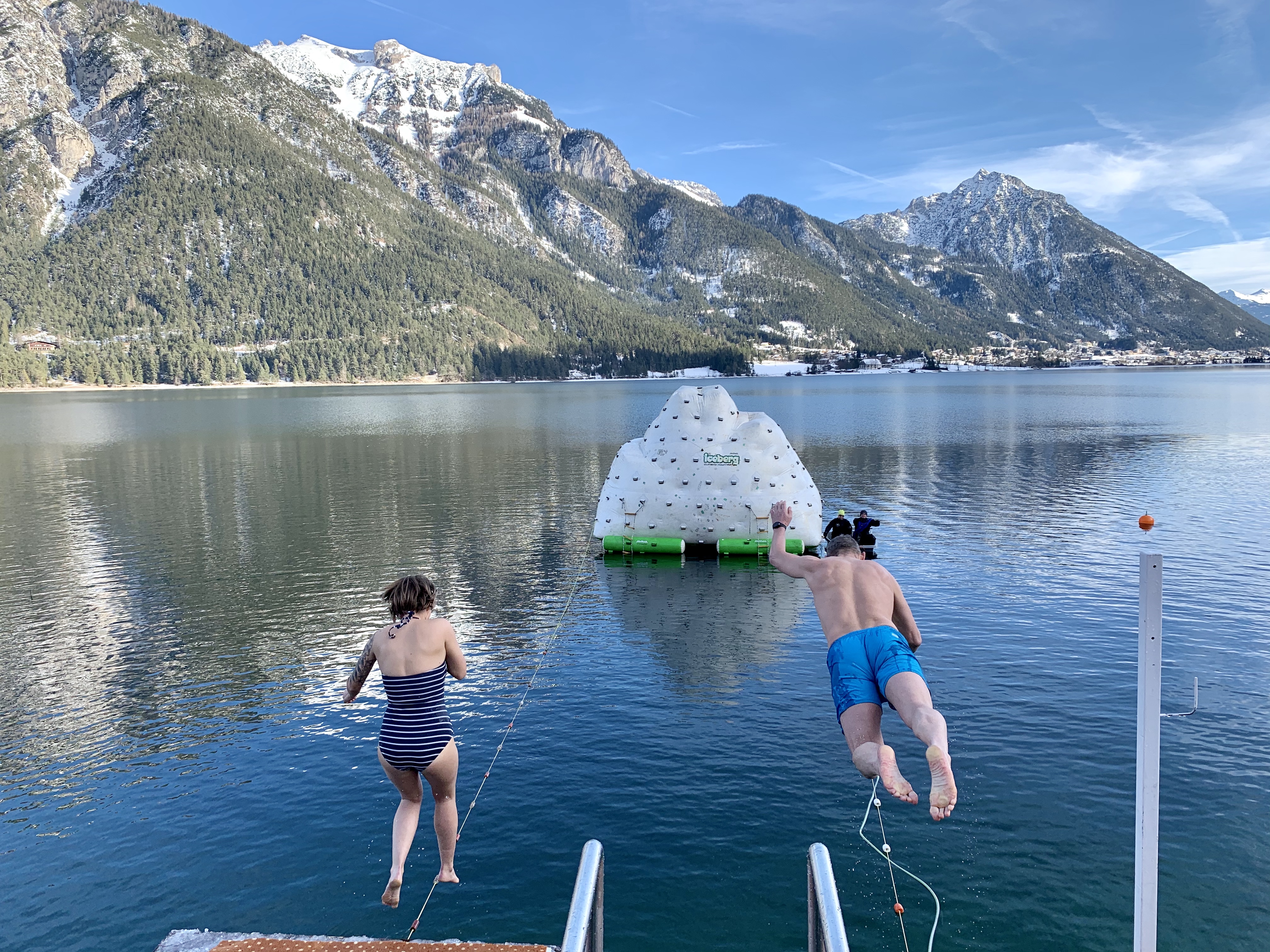 Guten Sprung ins Neue Jahr: 20. Silvesterschwimmen in PertisauBereits zum Jahreswechsel steht am Achensee auch ein legendärer Winterevent auf dem Programm: Beim 20. Silvesterschwimmen am 31. Dezember 2022 werden kälteerprobte Schwimmer im vier Grad kalten Achensee wieder um den Sieg rittern. Nach einer Schockkühlung mit einem Kübel Eiswasser gilt es, aus drei Metern Höhe in den See zu springen, 25 Meter zu einem Eisberg zu schwimmen, diesen hochzuklettern, die Silvesterglocke zu läuten und ans Ufer zurückzuschwimmen.