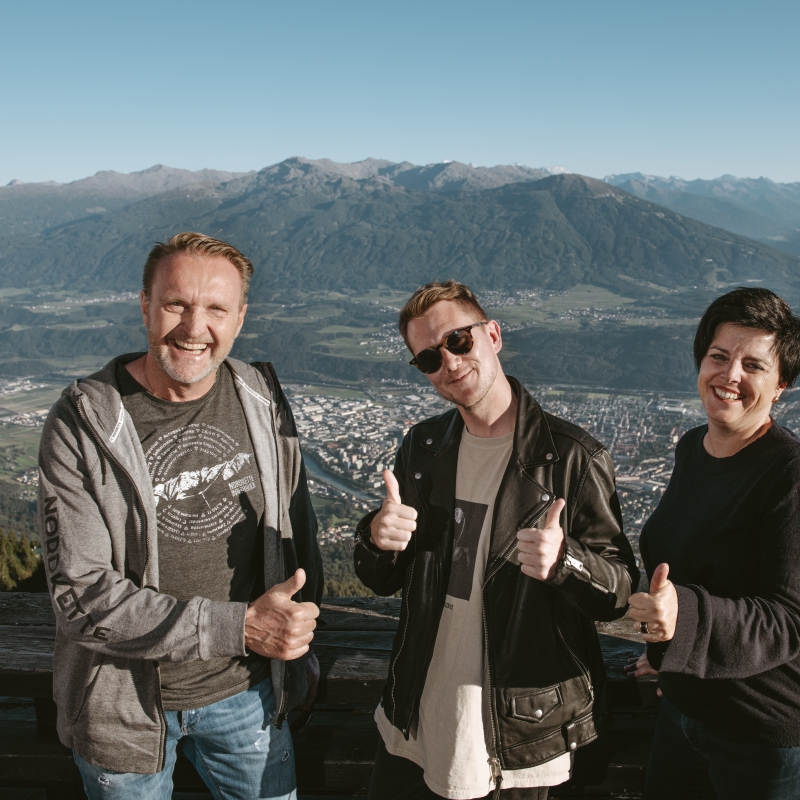 From left: Thomas Schroll (Managing Director Innsbrucker Nordkettenbahnen), Singer-Songwriter Richard Judge and Karin Seiler (Managing Director Innsbruck Tourismus)