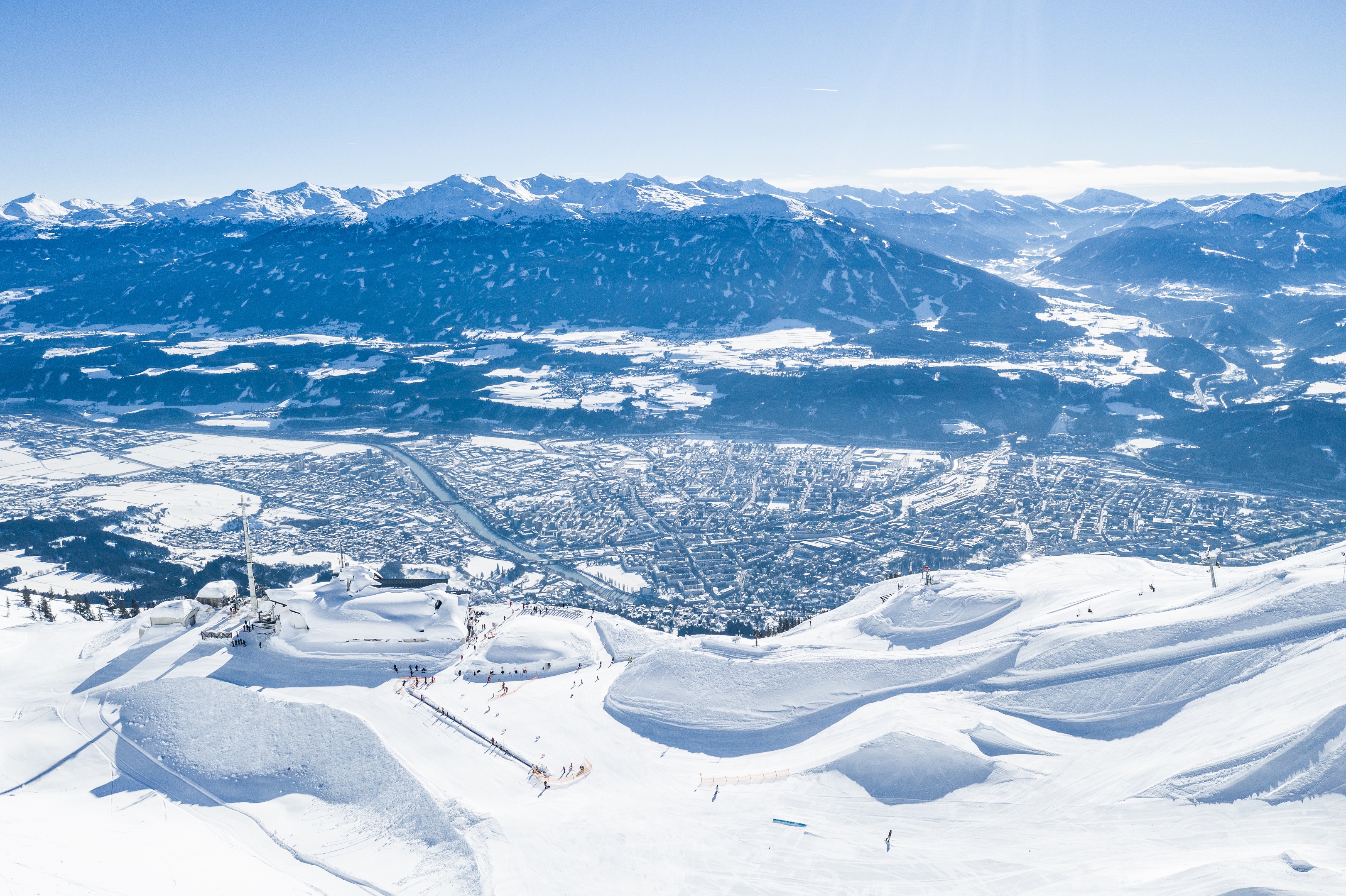 Visitors skiing on the Nordkette range are particularly impressed by the unique views of Innsbruck and its surrounding mountain scenery.