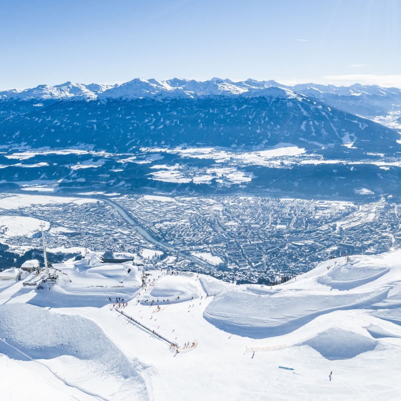Innsbruck’s local mountain, the Patscherkofel, is – geographically speaking – located on the other side of the city and offers pure skiing enjoyment. Families will appreciate the large beginner’s area, practice slopes and children’s playground, while skiers and snowboarders love the “Kofel” for its challenging World Cup and Olympic downhill run, as well as the 7-km valley run – a descent of over 1,000 metres. The ski slopes are also open every Tuesday and Thursday until 7 pm: the floodlit pistes nos. 8 and 9 are located right by the valley station and can be reached via the Heiligwasser lift. Families with pushchairs as well as wheelchair users can also enjoy a winter adventure on the Patscherkofel, as there is barrier-free access to the lift.