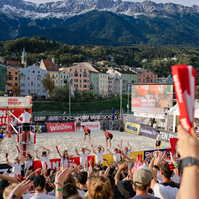 Beach volleyball at its best, with a buoyant party atmosphere and a scenic backdrop like no other: the Innsbruck BeachEvent is coming to town again in 2025, ready to transform the market square into a buzzing centre court. While admiring the views of the Nordkette, visitors can also watch in awe as local elite beach volleyballers take on top international teams in unmissable matches. The programme for the fourth edition of this event also includes the Business Cup tournament for companies and after-parties featuring DJ sounds. You’ll need a ticket to access the main stand for the main competition on the Saturday and the finals on the Sunday, but standing spots are free on all days when the tournament is on.