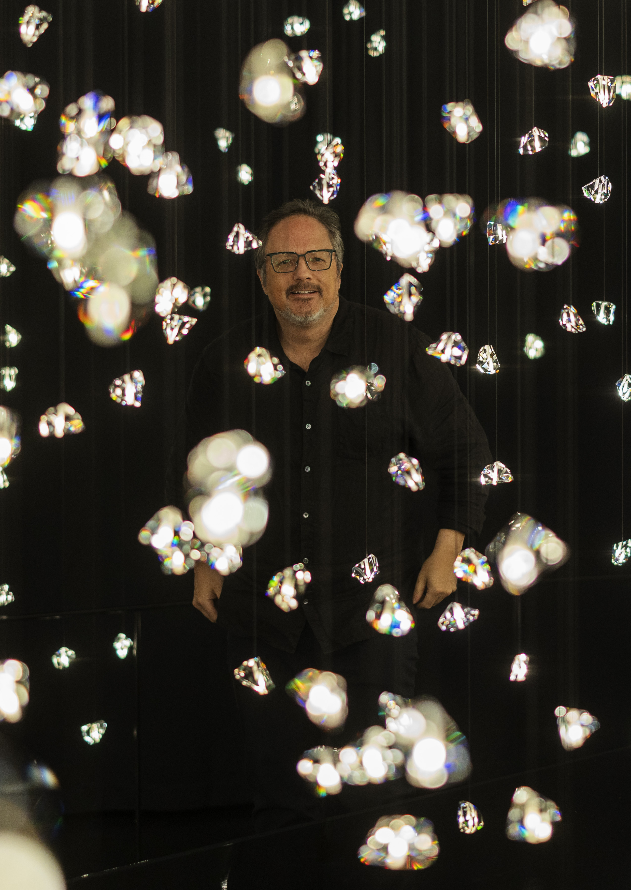Rafael Lozano-Hemmer: „Als Künstler, der mit Licht arbeitet, interessiere ich mich natürlich für Kristalle, weil sie das optische Medium sind, durch das Licht wirken kann. Für mich liegt die Erhabenheit des Kristalls in seiner Transparenz und darin, wie Künstler*innen oder Designer*innen ihn schleifen können, um wunderschöne Lichtspiele zu erzeugen. Ich möchte, dass die Menschen, die diese Wunderkammern verlassen, ein Gefühl der Zugehörigkeit, ein Gefühl der Teilhabe empfinden. Sie sollen ein Gespür dafür bekommen, wie zerbrechlich die Erfahrung von Kunst ist, die als Abbild der Zerbrechlichkeit des Lebens verstanden werden kann. Ich möchte, dass die Menschen darüber nachdenken, wie vergänglich alles ist, und sich bewusst machen, dass sie jeden Augenblick auskosten sollten.“