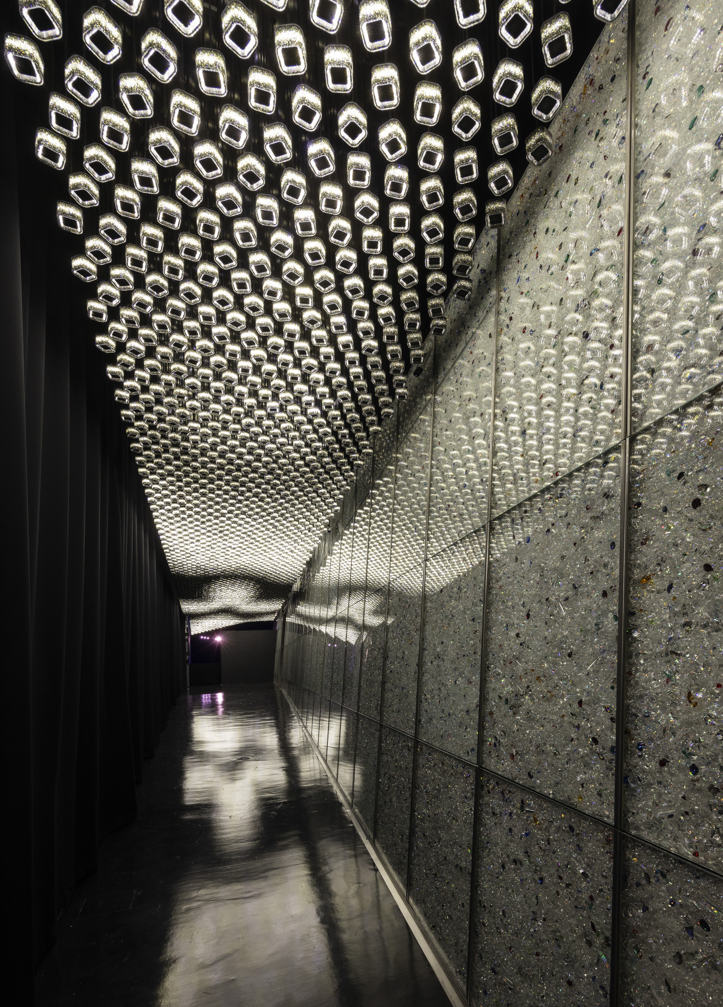 Mit „Kristallstimmen“, einem Klangporträt, würdigt Swarovski die bisher unbekannten Geschichten und ungehörten Stimmen des Unternehmens. Beim Betreten des Raums durchschreiten die Besucher*innen einen mit 3.000 freischwebenden Kristalllautsprechern versehenen Raum, von denen jeder eine von einem Swarovski-Teammitglied erstellte Aufnahme abspielt. Das Ergebnis ist ein Chor aus Stimmen, inspiriert von den Echos in den österreichischen Alpen. Die Stimmen überlagern sich, wobei verschiedene Sprachen, Intonationen und Flüstern miteinander kombiniert werden, um eine gesprochene Geschichte der Menschen zu erzählen, die Swarovski ausmachen.
