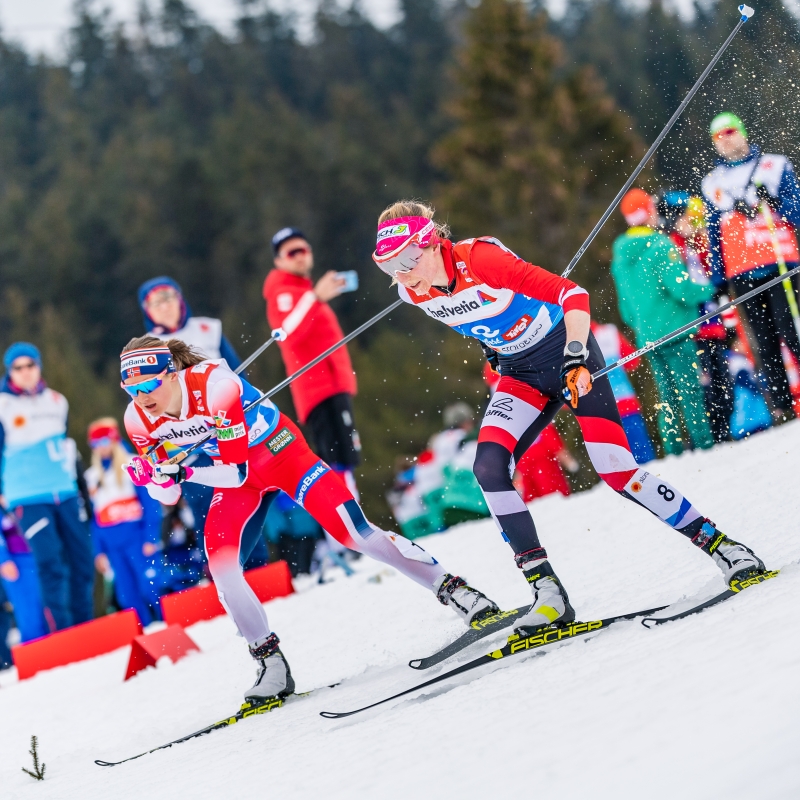 Teresa Stadlober, die nach einer starken Verkühlung auf einen Start beim Skiathlon verzichten hatte müssen, lief ein beherztes Rennen und landete am Ende auf dem guten 8. Platz. Lange Zeit hatte die Salzburgerin in der Spitzengruppe mitgekämpft, am Ende fehlten aber doch 2:03,8 Minuten auf die überlegene Siegerin Therese Johaug (NOR). „Die Stimmung heute in Seefeld war ein Wahnsinn. Schon beim letzten Bewerb hatte ich das Gefühl, dass mich alle anfeuern und unterstützen. Das war heute wieder so. Die vielen Fans haben mich so gepusht und unterstützt“, so Stadlober begeistert. „Ich war trotzdem froh, als ich endlich über die Ziellinie gelaufen bin – ich war heute wirklich am Ende meiner Kräfte“, ließ die beste ÖSV-Langläuferin wissen. Für den Langlauf-Nachwuchs hatte die Österreicherin auch gleich einen Tipp parat: „Ich hoffe, dass ich ein Vorbild sein kann. Langlaufen ist so ein schöner Sport. Es ist wichtig an sich zu glauben und nicht die Motivation und den Spaß am Langlaufen zu verlieren.“