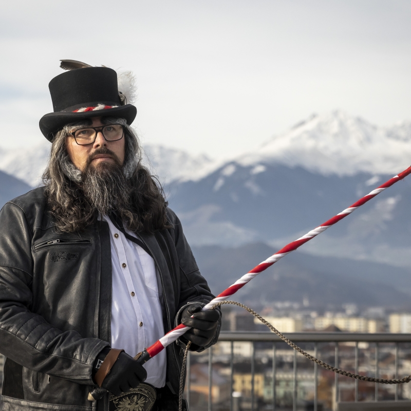 Der stellvertretende Obmann vom Fisser Blochziehen Thomas Wachter stellt im nächsten Jahr die Leitfigur, den Fuhrmann, dar.