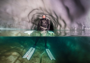 Das Zillertal lässt mit einem Tauchgang in extremer Höhenläge mit eisiger Atmosphäre aufhorchen. Tatort: ein Eiswasserschacht in dem seit 2008 für die Öffentlichkeit zugänglichen Natur Eis Palast am Hintertuxer Gletscher. Dort, wo obenauf 365 Tage im Jahr Pistenvergnügen möglich ist, holte der österreichische Apnoetaucher Christian Redl kürzlich tief Luft für eine noch nie da gewesene Sensation. Redl, der bis dato neun Weltrekorde im Freitauchen aufstellte, wollte der erste Mensch sein, der unter einem Gletscher durchtaucht.