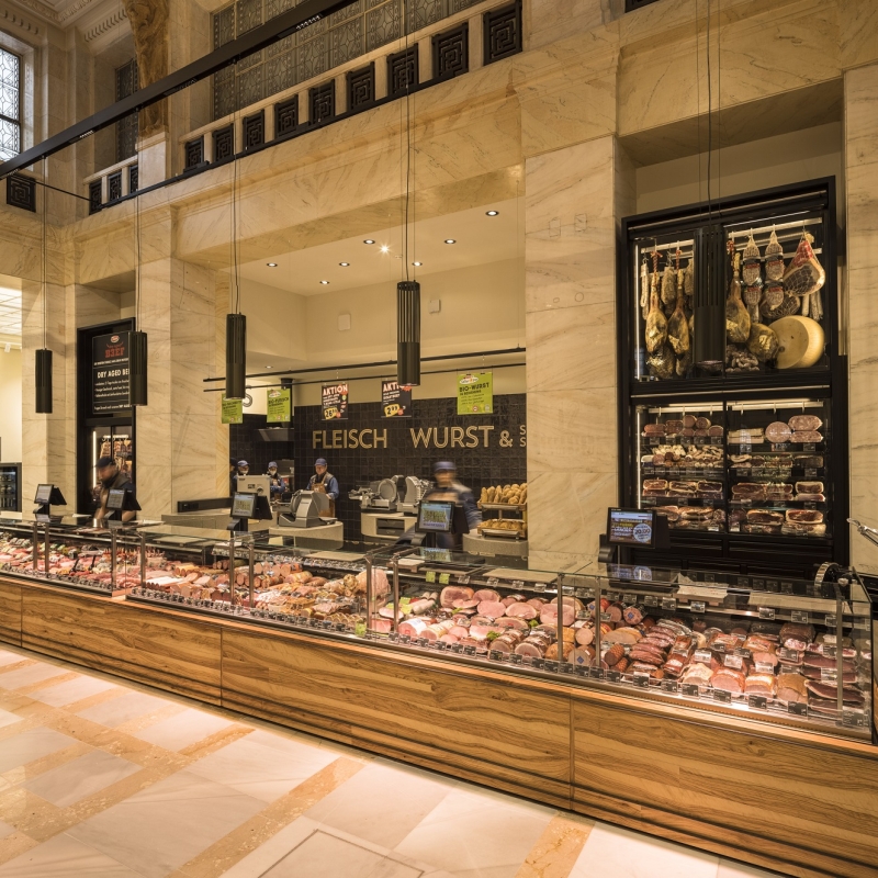 Über drei Jahre wurde geplant, restauriert und umgebaut, um im Kassensaal des Wiener Bankvereins den wohl „schönsten Supermarkt Wiens“ entstehen zu lassen. Die Erhaltung der historischen Bausubstanz und gleichzeitige Adaption an die Bedürfnisse der neuen Nutzung beanspruchten Innenarchitekten und Sortimentsverantwortliche, bevor am 26. Mai 2021 erstmals „Dry Aged Beef und lokaler Fisch anstelle von Valuten“ über den Tresen gingen. „Wir haben in diesem besonderen Gebäude die besten Lebensmittel aus unserem bestehenden Sortiment zusammengeführt. Viele davon sind gekühlt, frisch zubereitet oder in Bedienung angeboten. Entsprechend groß waren die Herausforderungen, diese Vielfalt des Genusses in diesen historischen Räumen unterzubringen“, erklärt INTERSPAR Österreich-Geschäftsführer Johannes Holzleitner. „Wir freuen uns, im Haus am Schottentor den neuen Leading-Store des SPAR-Konzerns eröffnet zu haben. Dieses PEMA-Projekt ist einzigartig in Österreich und überzeugt durch die zentrale Lage in Wien und das behutsam renovierte historische Ambiente“, so KR Hans K. Reisch, Stv.-Vorstandsvorsitzender SPAR Österreich. Anlässlich der Eröffnung spendete auch Wiens Bürgermeister Michael Ludwig den Verantwortlichen Lob für den sensiblen, „fast zärtlichen“ Umgang mit der historischen Bausubstanz.