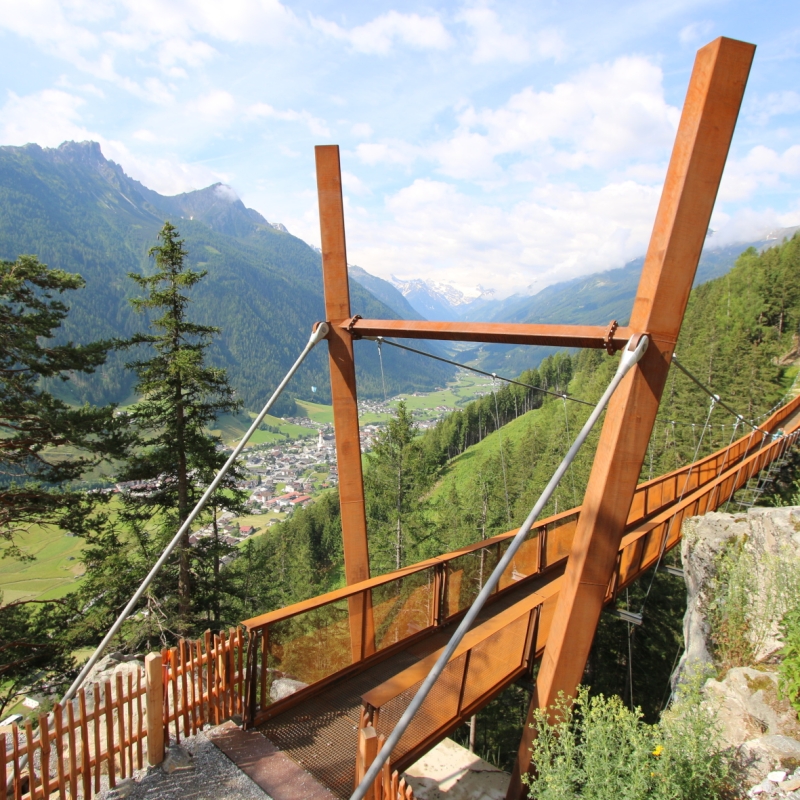110 Meter lange Hängebrücke auf der Stubaier „Sunnenseit’n“ und Fußgängerzone in Neustift eingeweiht