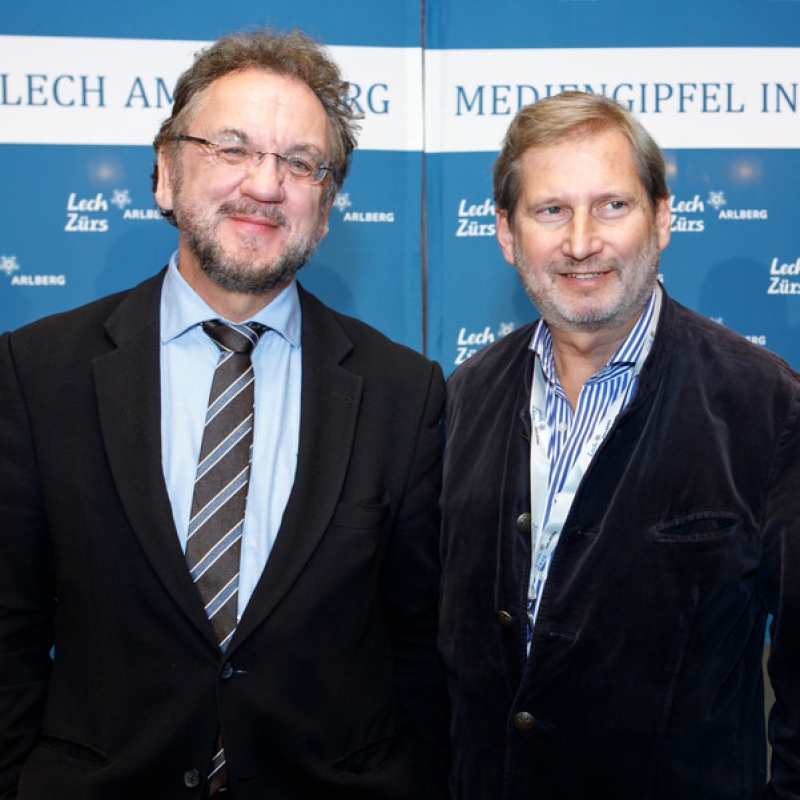 Eröffneten den 12. Europäischen Mediengipfel: Heribert Prantl (Mitglied der Chefredaktion der Süddeutschen Zeitung) und Johannes Hahn (EU-Kommissar für Europäische Nachbarschaftspolitik und Erweiterungsverhandlungen, ÖVP).