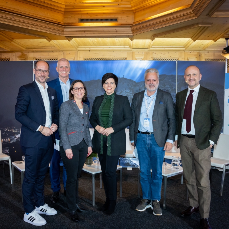Landesrat Mario Gerber, Moderator Günther Schimatzek, Ulrike Rauch-Keschmann (Sektionschefin im Bundesministerium), Karin Seiler (GF Tirol Werbung), Harald Pechlaner (Universität Eichstätt/Ingolstadt), Norbert Kettner (Wien Tourismus, v.l.).