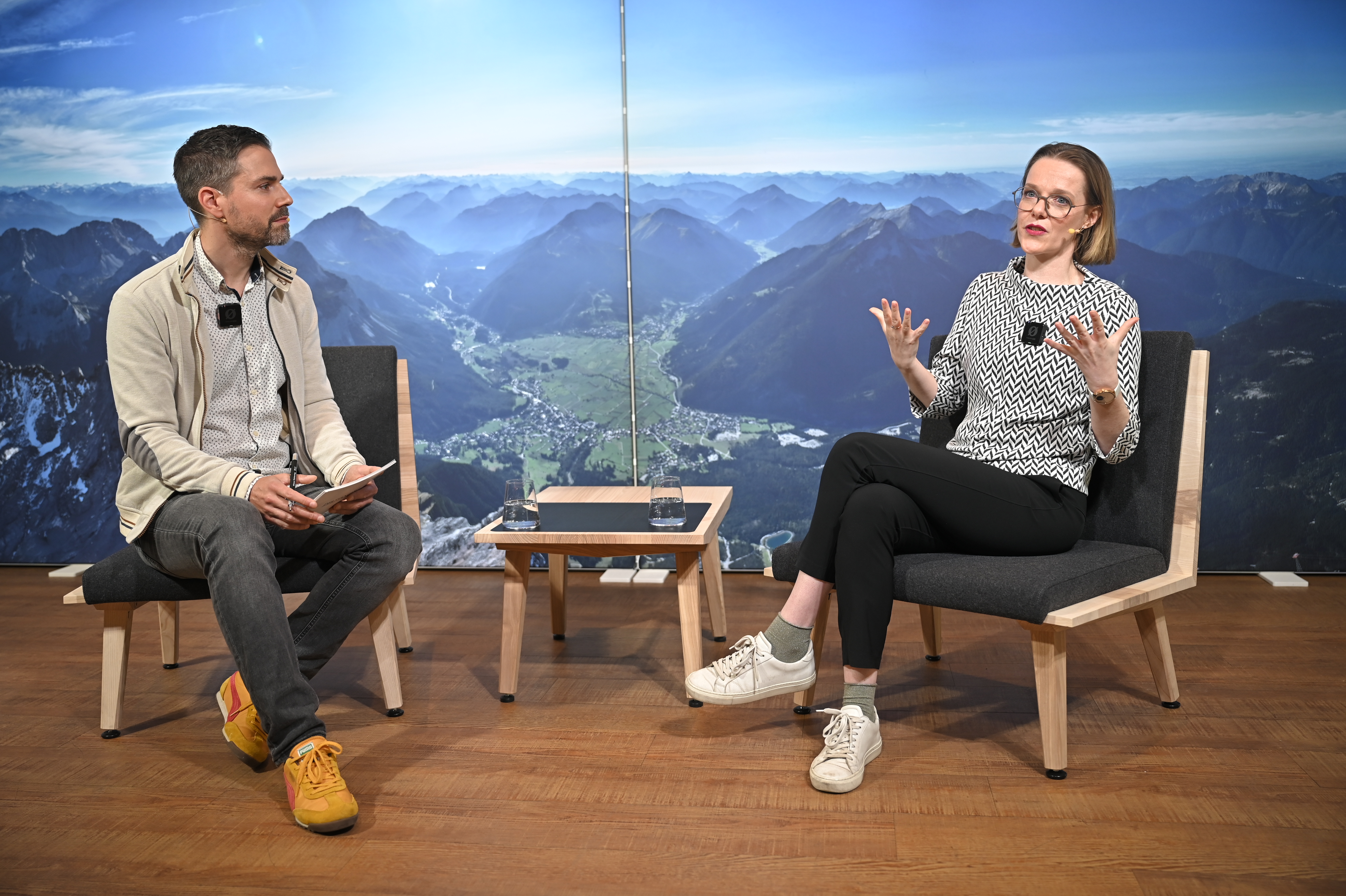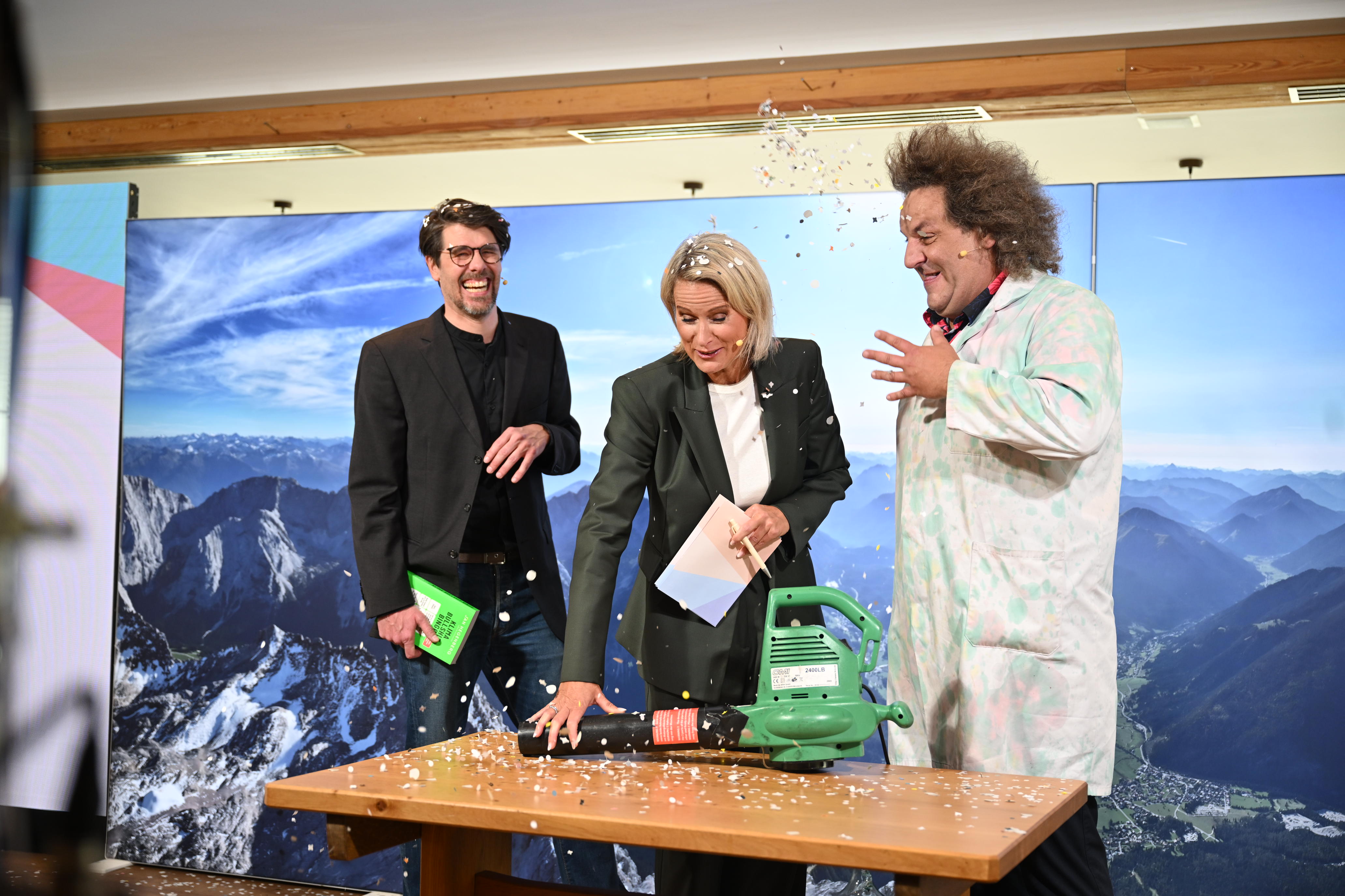 Ein humoriges Highlight des zweiten AlpenKlimaGipfels war der Wissenschaftstalk der Streamingplattform JOYN mit SPIEGEL Bestseller Autor Jan Hegenberg („Klima Bullshit Bingo“ und „Weltuntergang fällt aus“) und Konrad Stöckel. Unter der Moderation von Claudia von Brauchitsch (Anchorwoman der Sat.1-newstime) veranschaulichte Stöckel in Live-Experimenten die Phänomene der Luftströmung hautnah und sorgte für zahlreiche Lacher im höchsten TV-Studio der Alpen.
