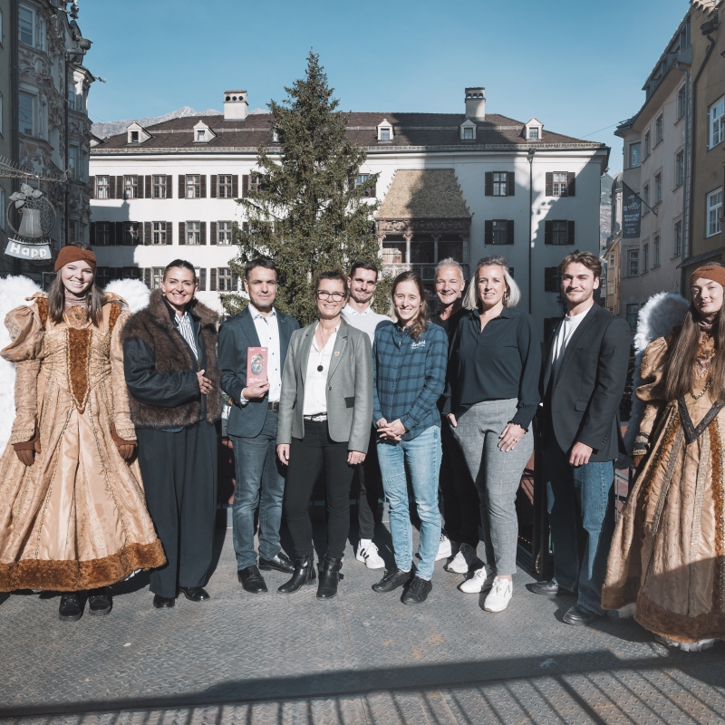 Die Christkindlmärkte von „Advent in Tirol“ haben sich der authentischen und traditionellen Tiroler Weihnacht verschrieben (v.l.): Maria Chelucci (Achenseeschifffahrt), Florian Neuner (Tirol Werbung), Sabine Geir (Alpbachtal Tourismus), Andreas Brunner (Stadtmarketing Schwaz), Lisa Krenkel (TVB Seefeld), Robert Neuner (Bergweihnacht Innsbruck), Anny Franzelin (Stadtmarketing Hall in Tirol) und Matthias Zeinzinger (TVB Kufsteinerland).