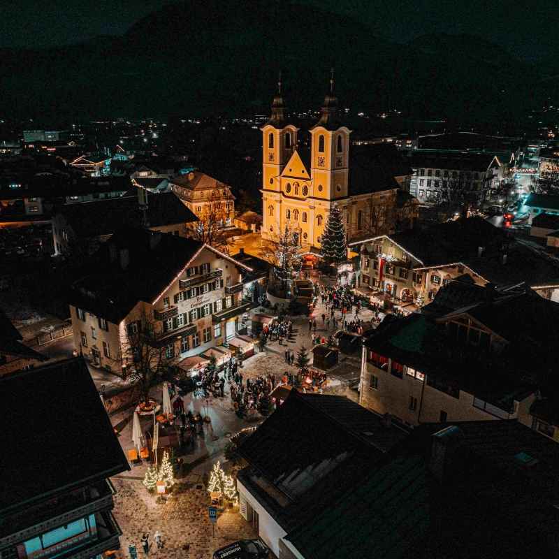 Kulinarisch, stimmungsvoll und echt wird auch am Weihnachtsmarkt von St. Johann in Tirol gefeiert. Köstlichkeiten wie Speckknödel, Baumstriezel oder Apfel-Zimt-Punsch laden zum Genießen ein. Kinder freuen sich aufs Ponyreiten, vergnügen sich beim Kasperltheater oder backen duftendes Stockbrot. Außerdem sorgen wöchentliche Konzerte von heimischem Musiker:innen für eine besinnliche Atmosphäre.